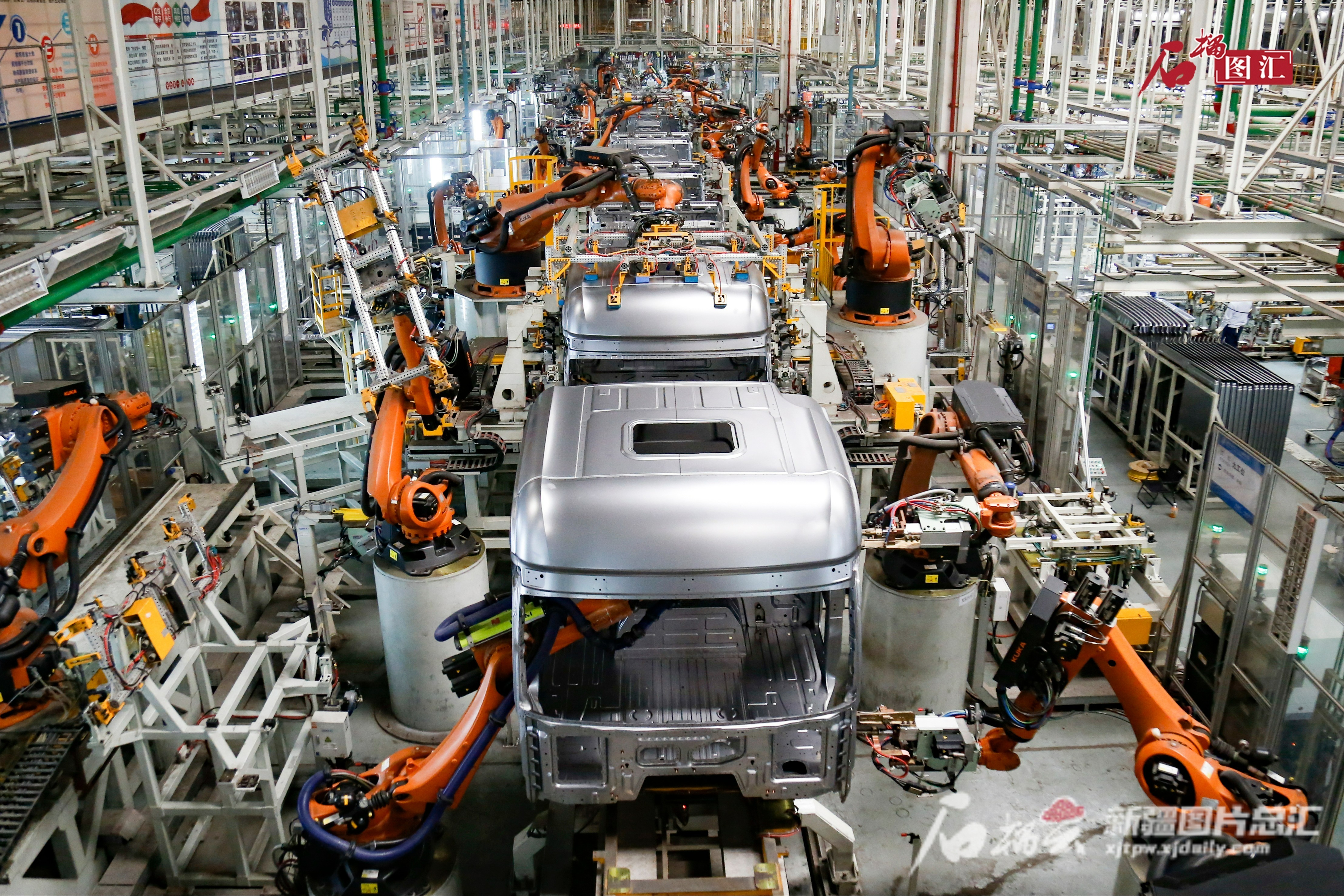 8月23日,位于西安经济技术开发区泾渭工业园的陕西汽车控股集团有限公司生产车间,机械臂组装卡车驾驶室。石榴云/新疆日报记者 谢龙摄