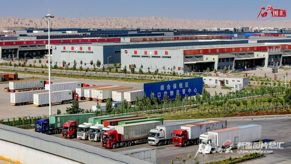8月23日,货运车辆在喀什综合保税区准备通关。喀什综合保税区2014年9月经国务院批复设立,2015年4月正式封关运营。石榴云/新疆日报记者 蔡增乐摄