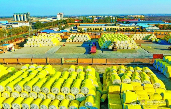 位于呼图壁县五工台镇的新疆锦华大桥棉业有限公司收购的新棉整齐摆放(10月22日无人机摄)。眼下,呼图壁县52.6万亩棉花采收过半,各棉花加工企业积极做好收购工作,确保棉农顺利交售新棉。 陶维明摄