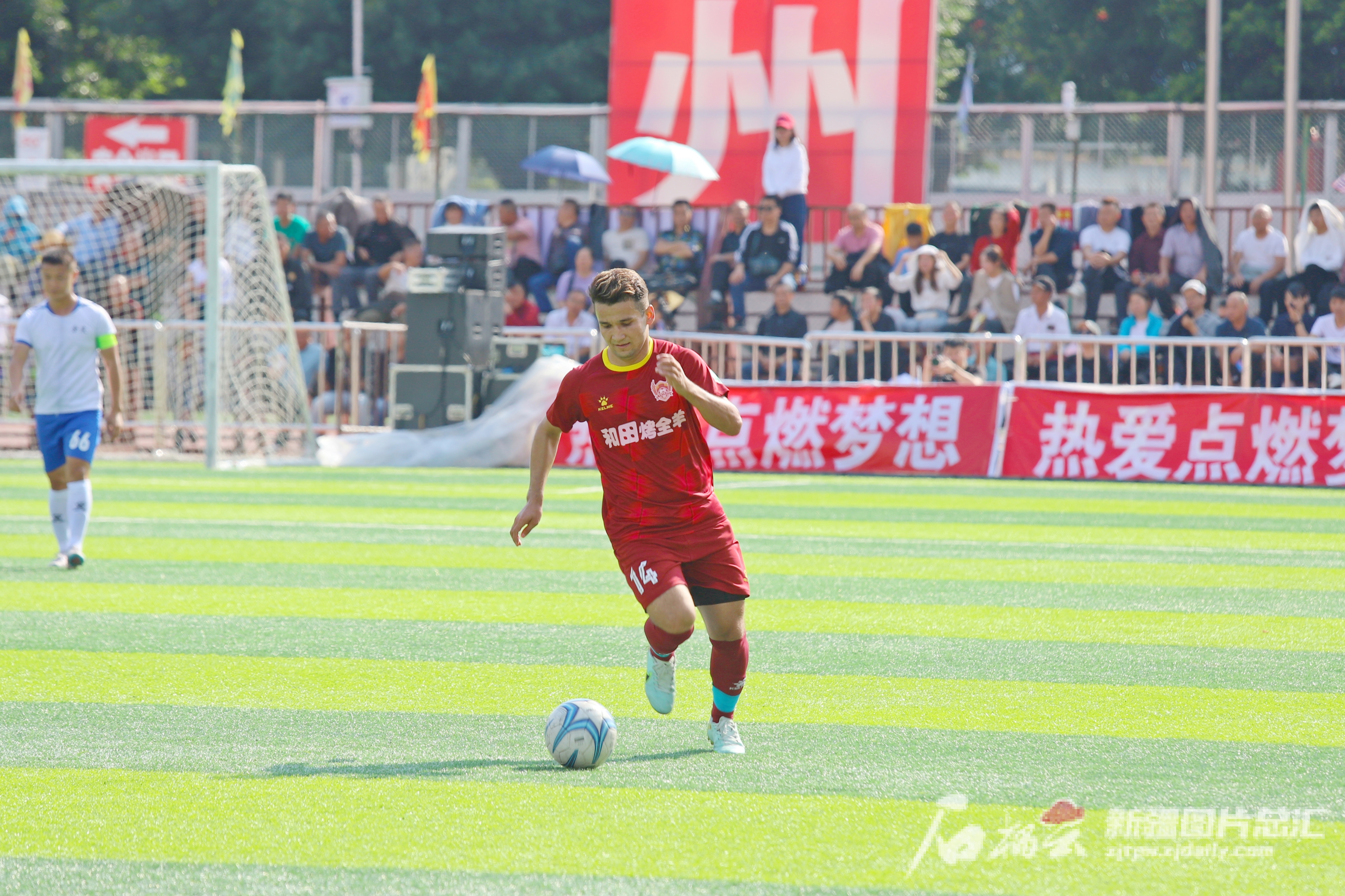 10月28日,新疆和田约特干故城烤全羊足球队对阵贵州余庆小叶苦丁茶队,新疆烤全羊队3比0取得比赛胜利。胡礼政摄