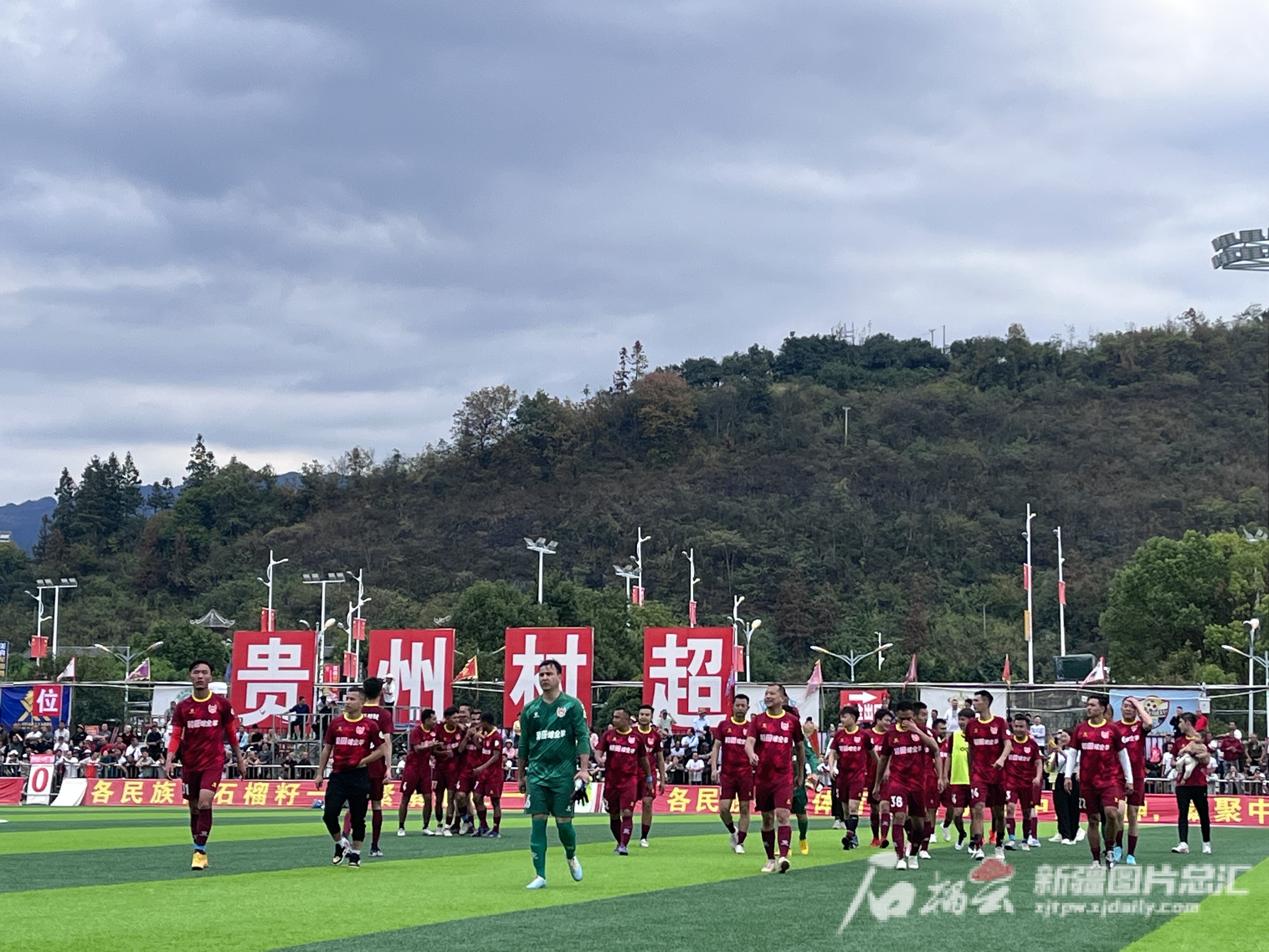 石榴云/新疆日报讯(记者王晶晶报道)10月28日,贵州村超全国美食足球友谊赛收官。正午烈日下,没有一丝阴凉的足球场看台上,一万多名来自全国各地的观众见证了新疆和田约特干故城烤全羊足球队(以下简称“新疆烤全羊队”)的3粒精彩进球。