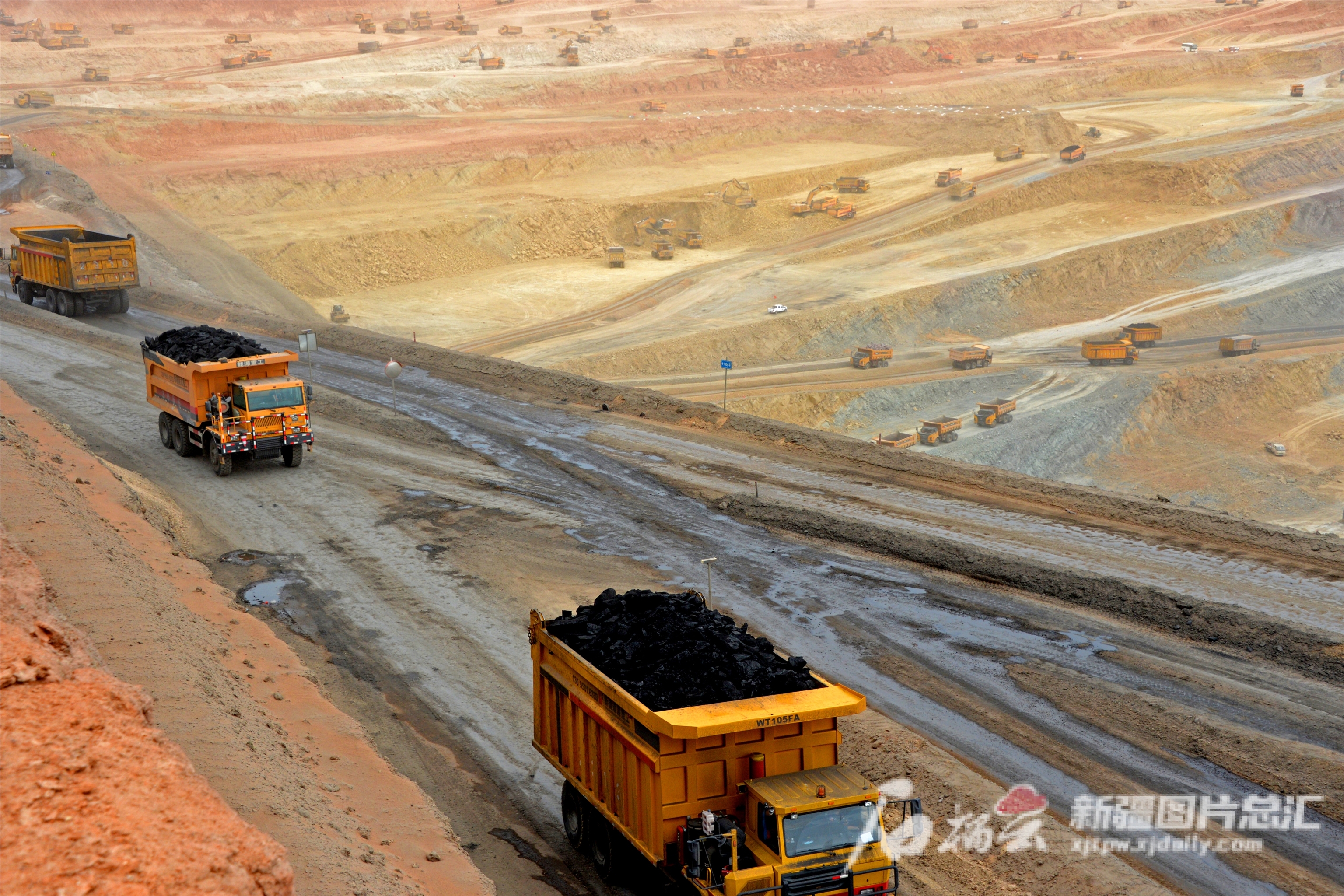巴里坤三塘湖石头梅一号露天煤矿,货车在运煤。张建刚 摄