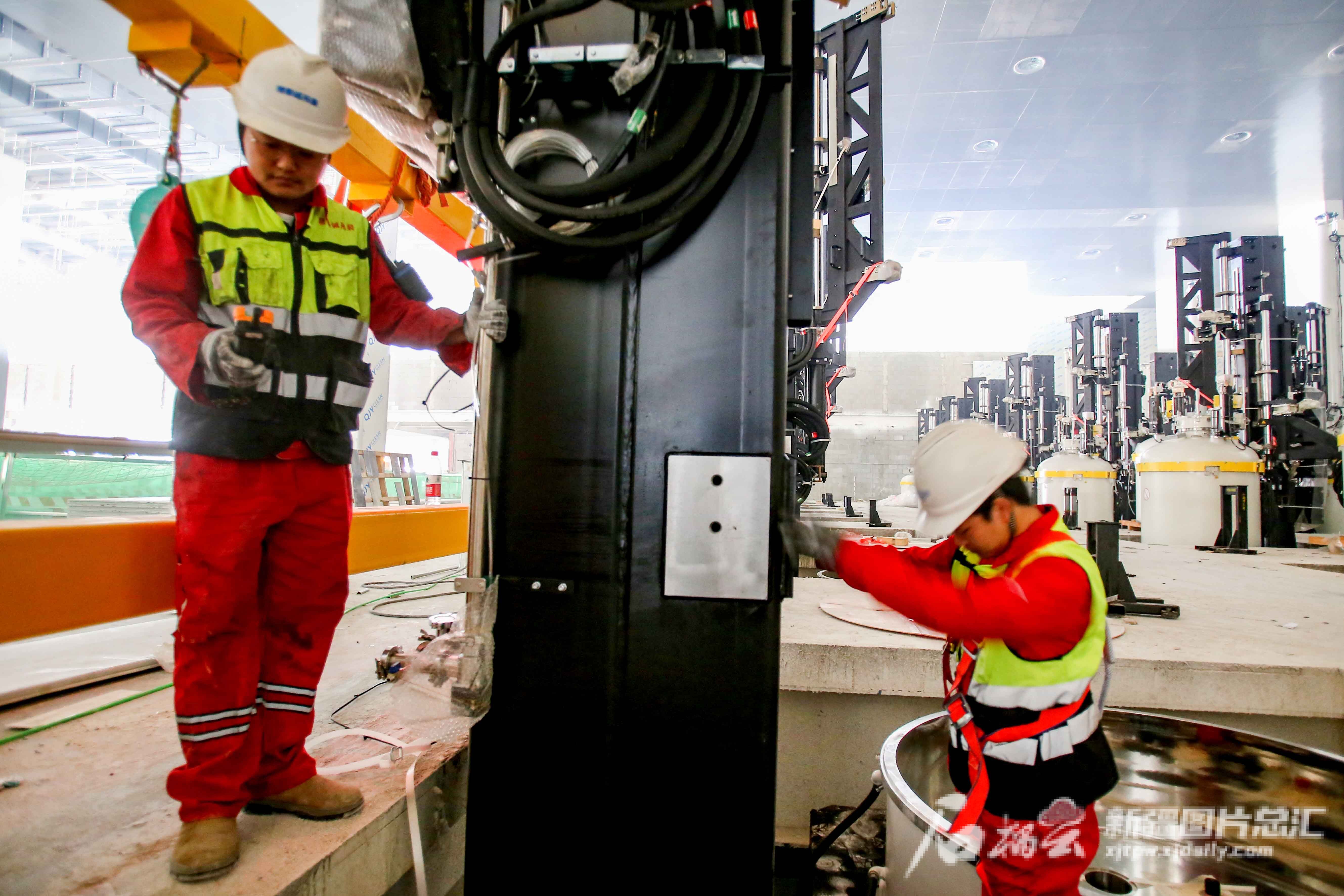 10月31日,工人在清电硅业有限公司光伏硅基示范产业园生产车间安装设备。