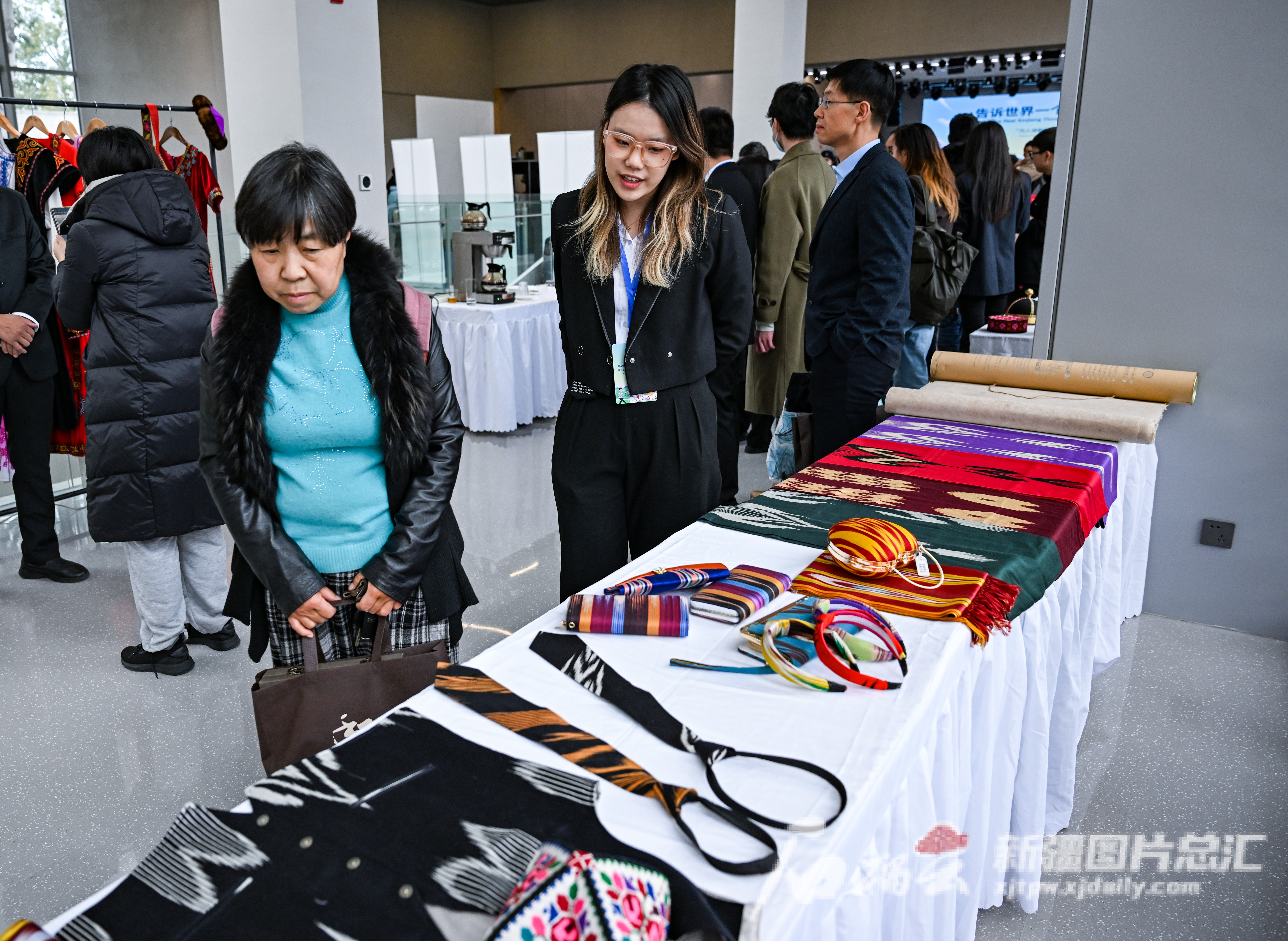 11月16日,参会者在分享会现场参观新疆特色手工制品。