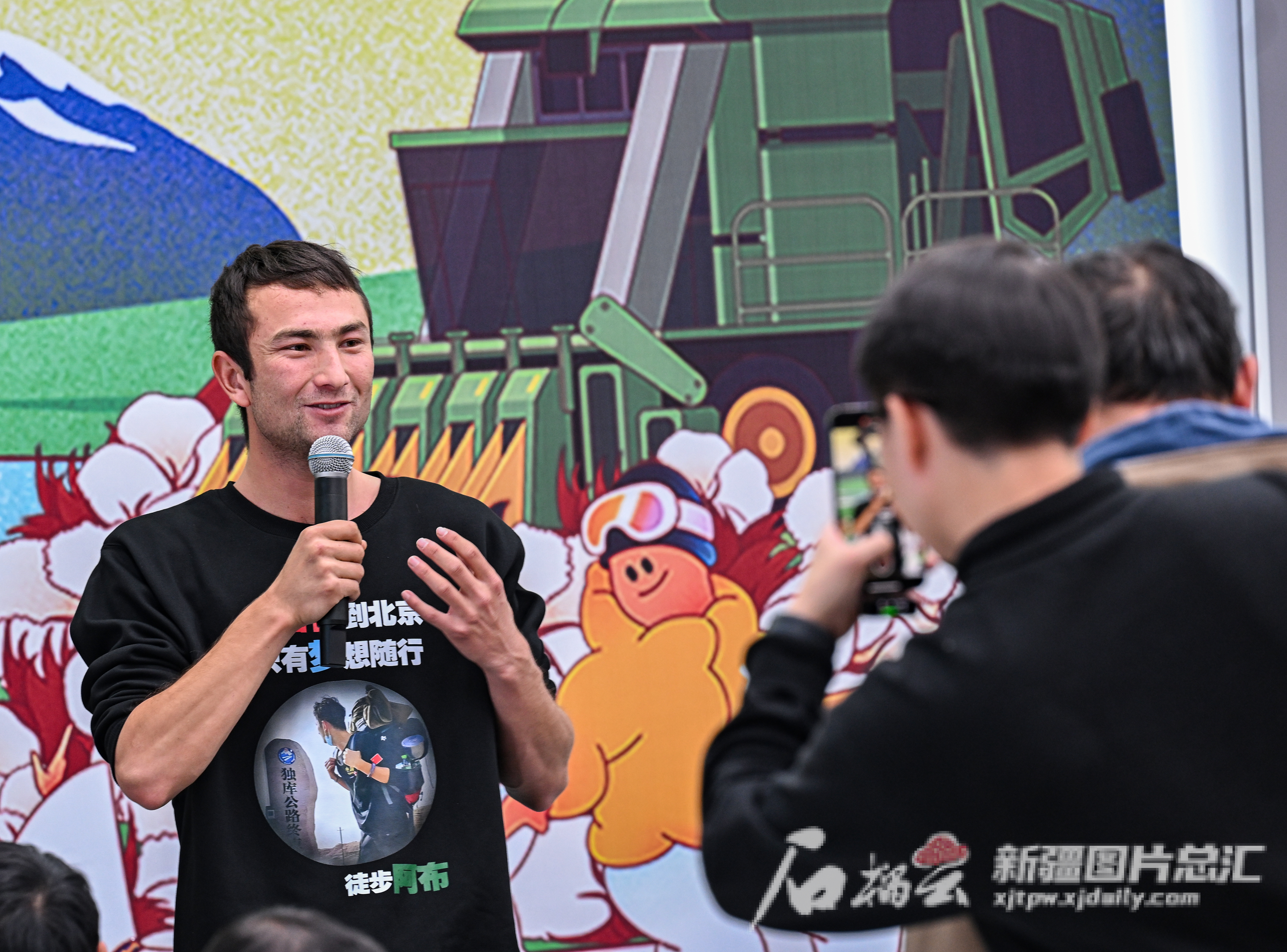 11月16日,来自新疆喀什的青年阿布赛麦提·克热穆在分享会现场讲述他从今年2月开始徒步5000多公里走到北京的故事。