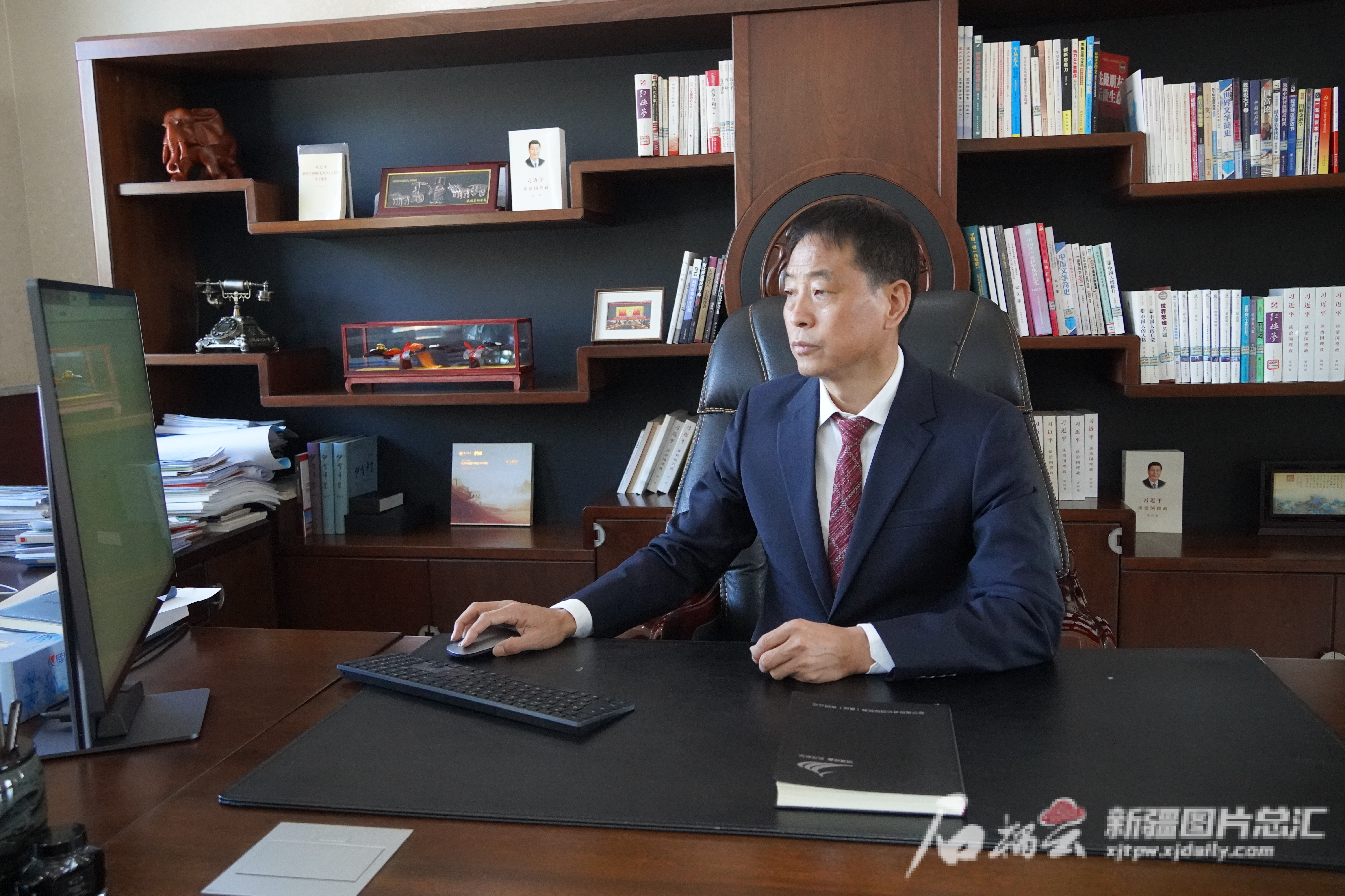 于成忠在电脑前查看业务部门上报的数据。李润泽 摄