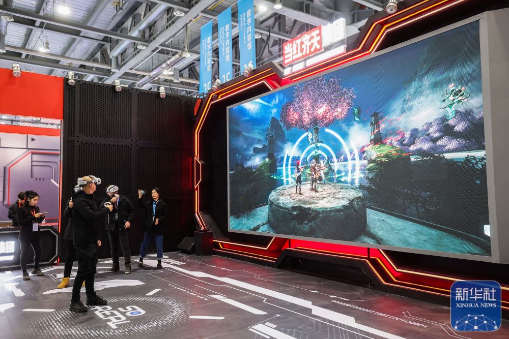 11月23日,观众在第二届全球数字贸易博览会数字内容馆体验应用虚拟现实技术的游戏。