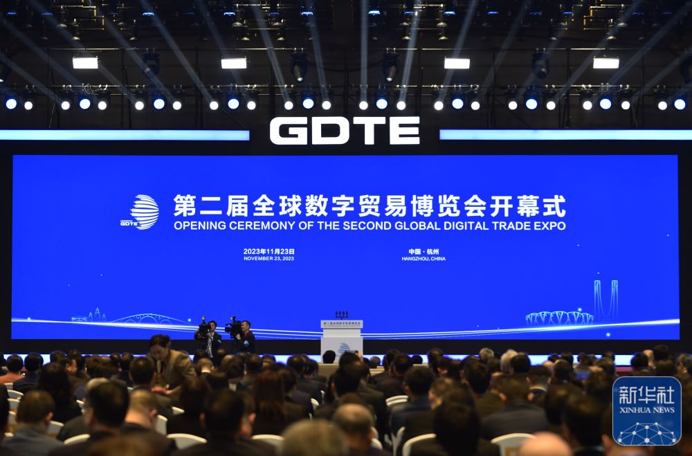 11月23日拍摄的第二届全球数字贸易博览会开幕式现场。