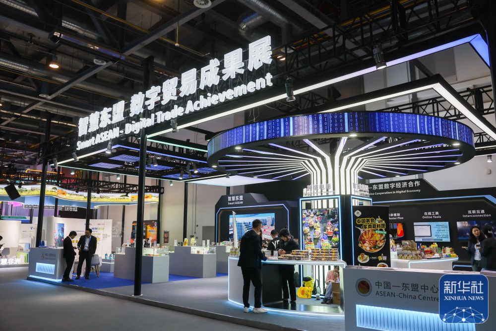 11月23日在第二届全球数字贸易博览会拍摄的智慧东盟数字贸易成果展。