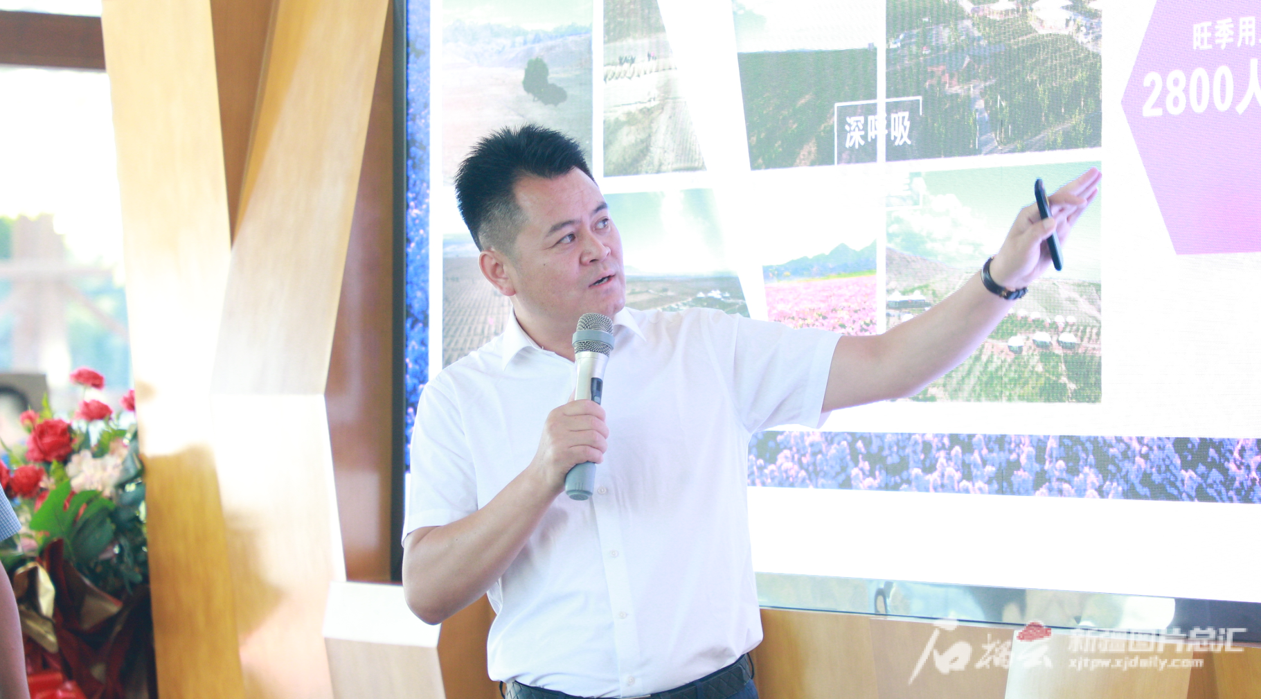 尹胜在介绍企业发展情况。伊犁冠通生物集团有限公司供图