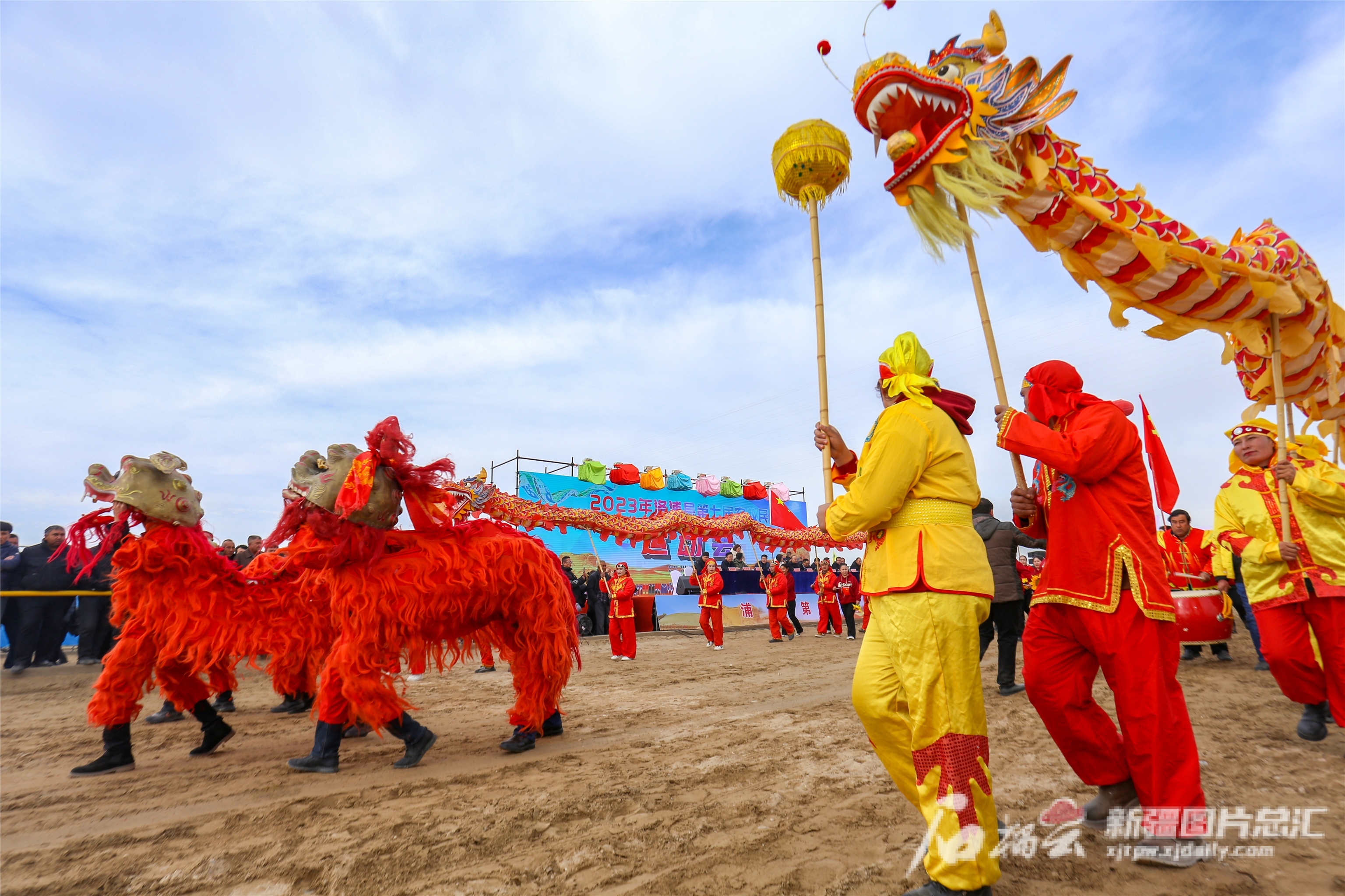 12月9日,群众在开幕式上表演舞龙舞狮。买买提艾力·艾尼瓦尔 摄