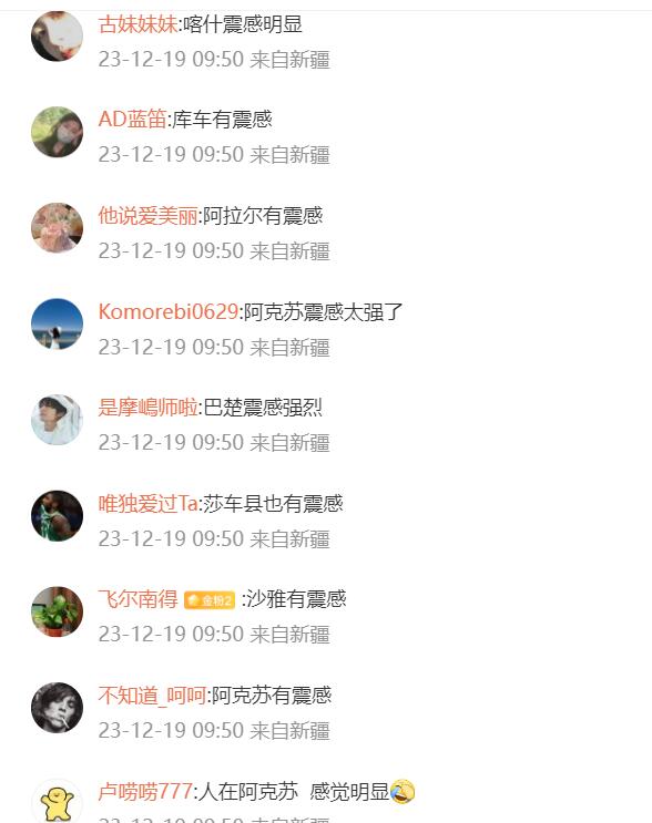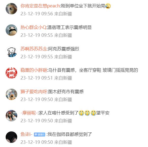 地震发生后,伽师县、阿拉尔市、库车市、阿克苏市、巴楚县、沙雅县等地的网友都表示震感明显。