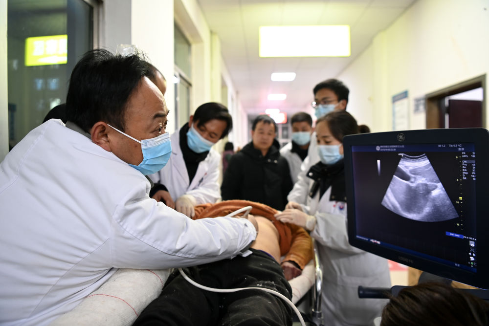 12月19日,在甘肃省临夏回族自治州积石山县人民医院,地震伤员接受诊疗。新华社记者 范培珅 摄