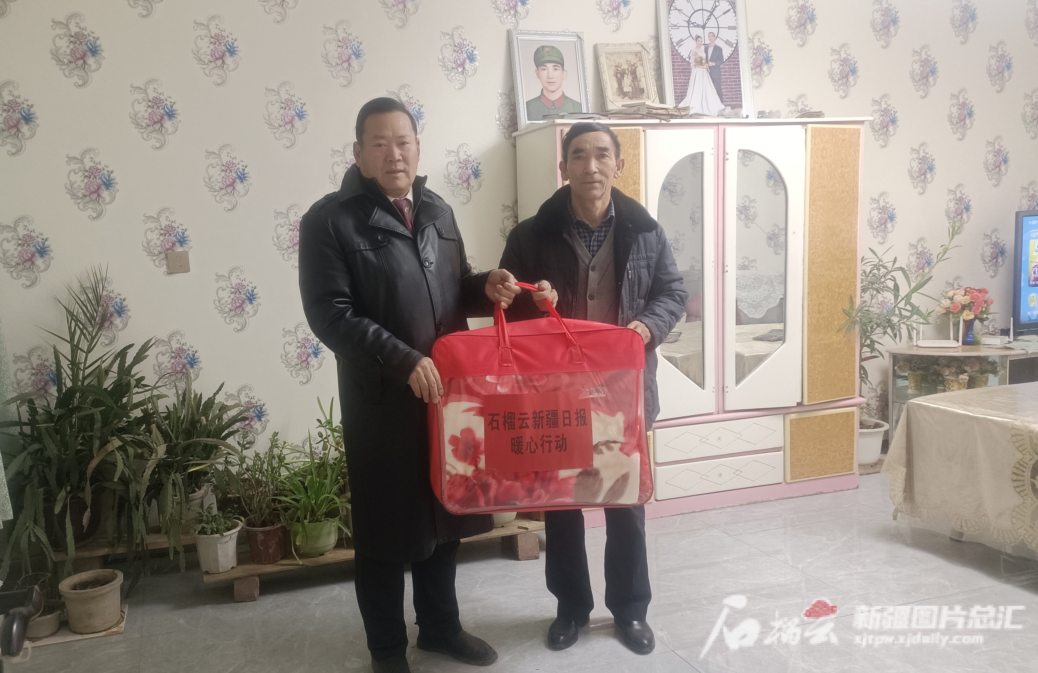 12月17日,积极响应新疆日报社(集团)三项公益活动,牟宗宝(左)到退役老兵台来提·台外库力家慰问。师辉 摄