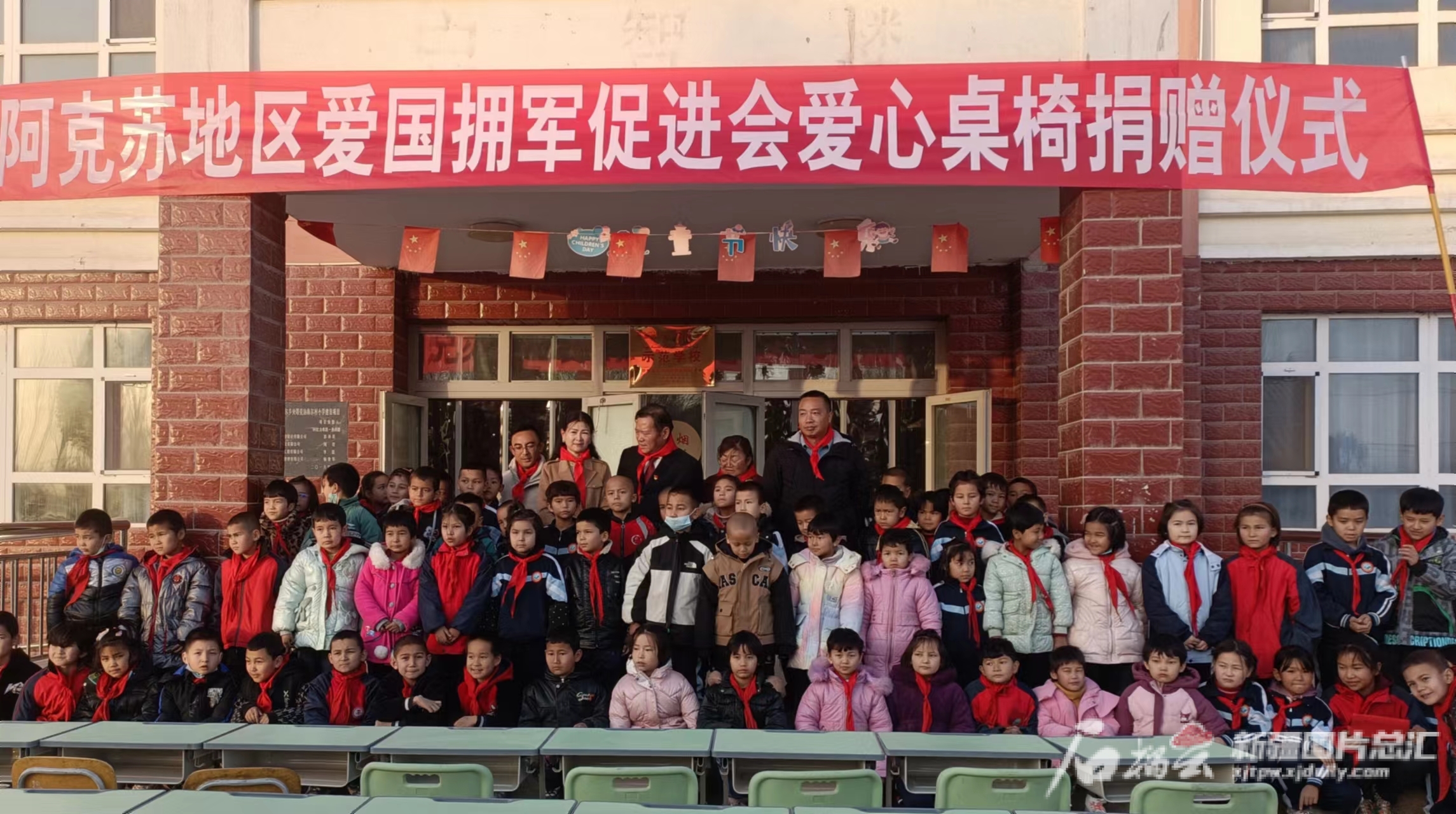 阿克苏地区爱国拥军促进会在乡村小学开展捐赠活动。师辉 摄