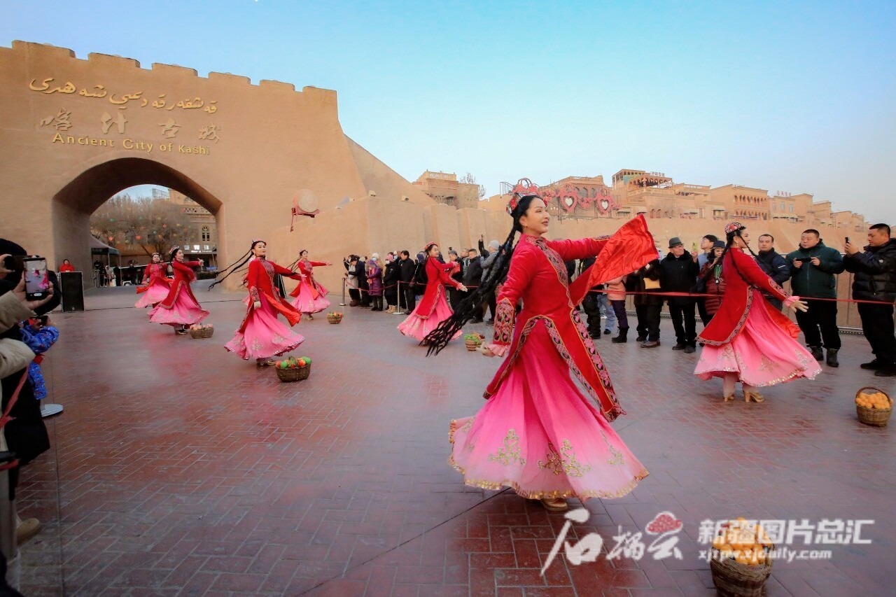1月1日,演员在喀什古城入城仪式上表演节目。天山网-新疆日报记者 蔡增乐摄