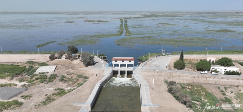 2023年8月2日,大西海子水库,新疆第24次第二阶段向塔里木河下游生态输水工作启动。王傲摄