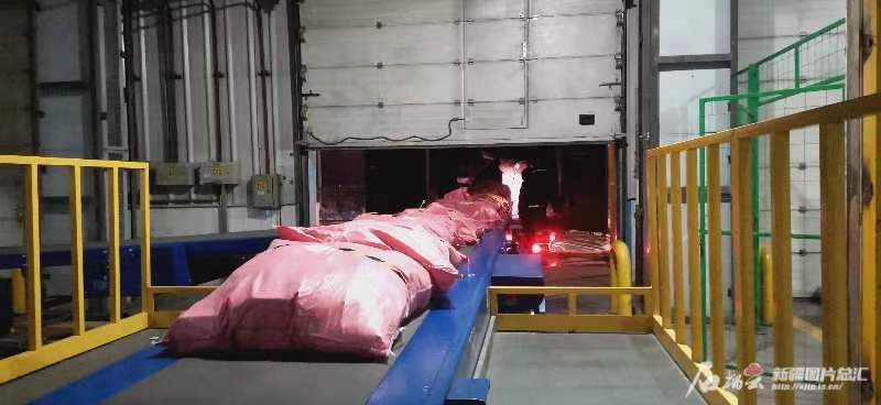 发往哈萨克斯坦的国际邮件正在排队等待上车。马玲 摄