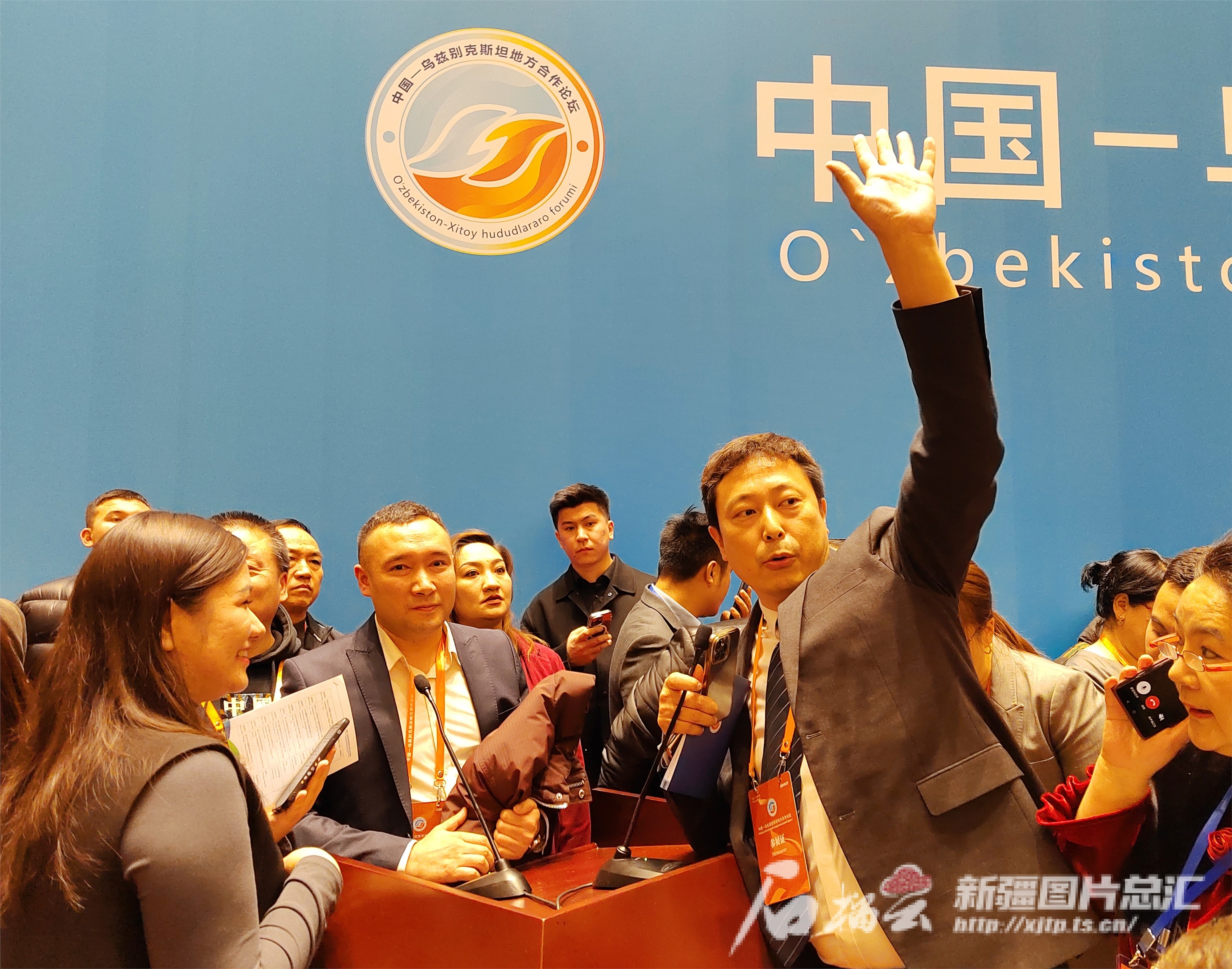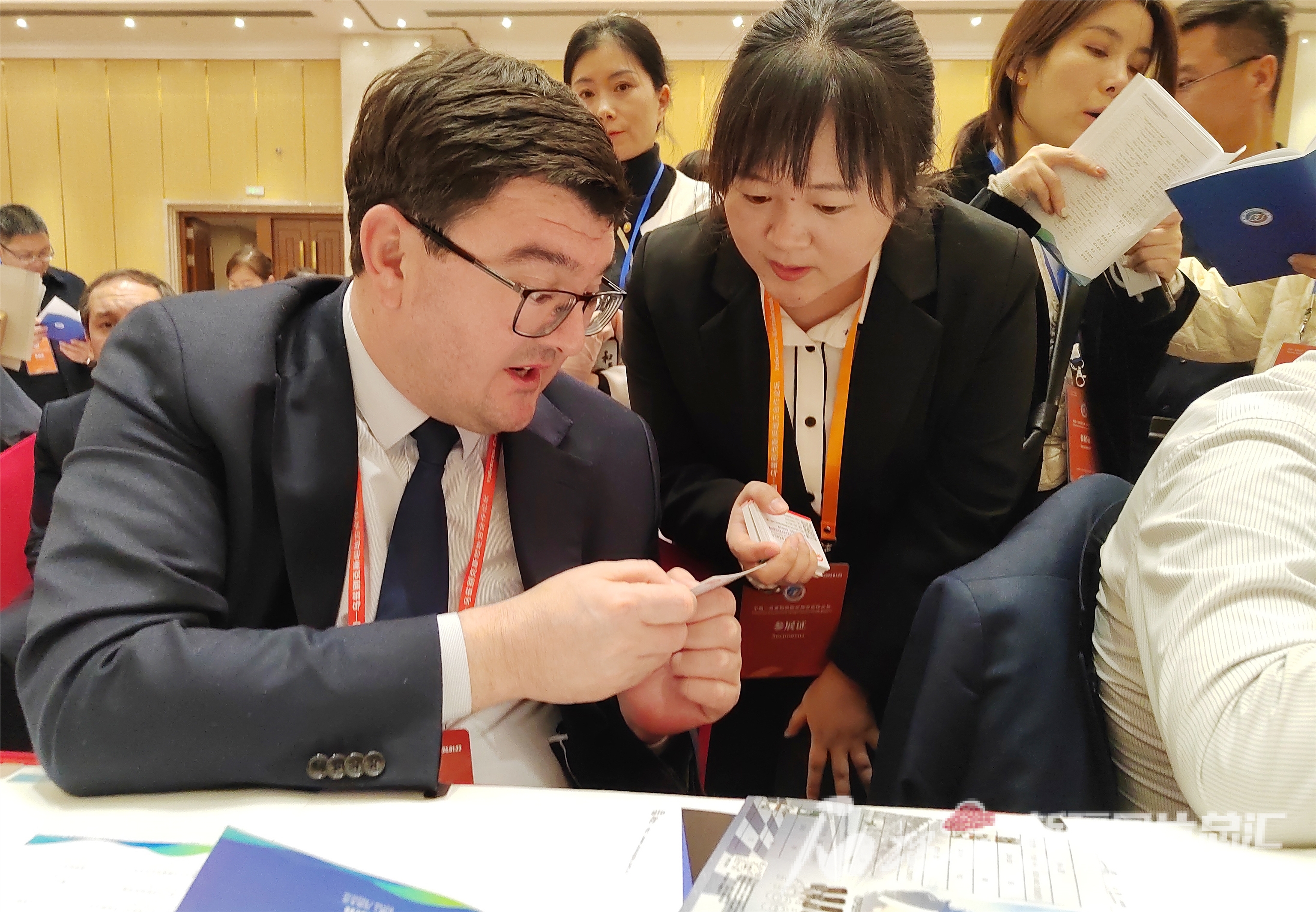 1月22日,中乌双方嘉宾在中国—乌兹别克斯坦地方间企业对接会现场互留联系方式。天山网-新疆日报记者 邹懿摄