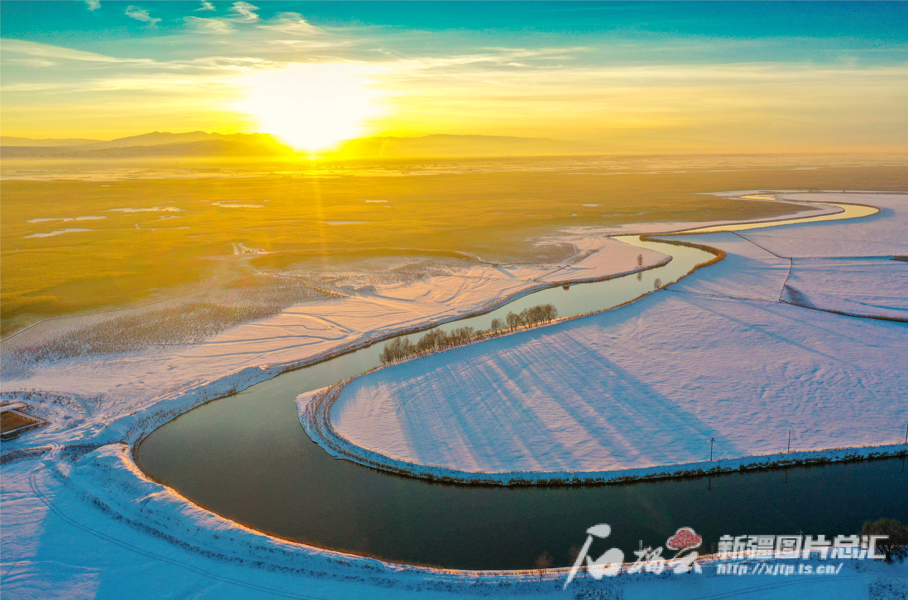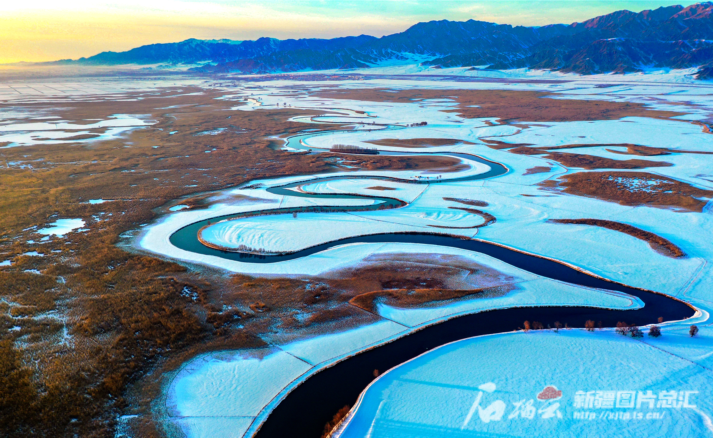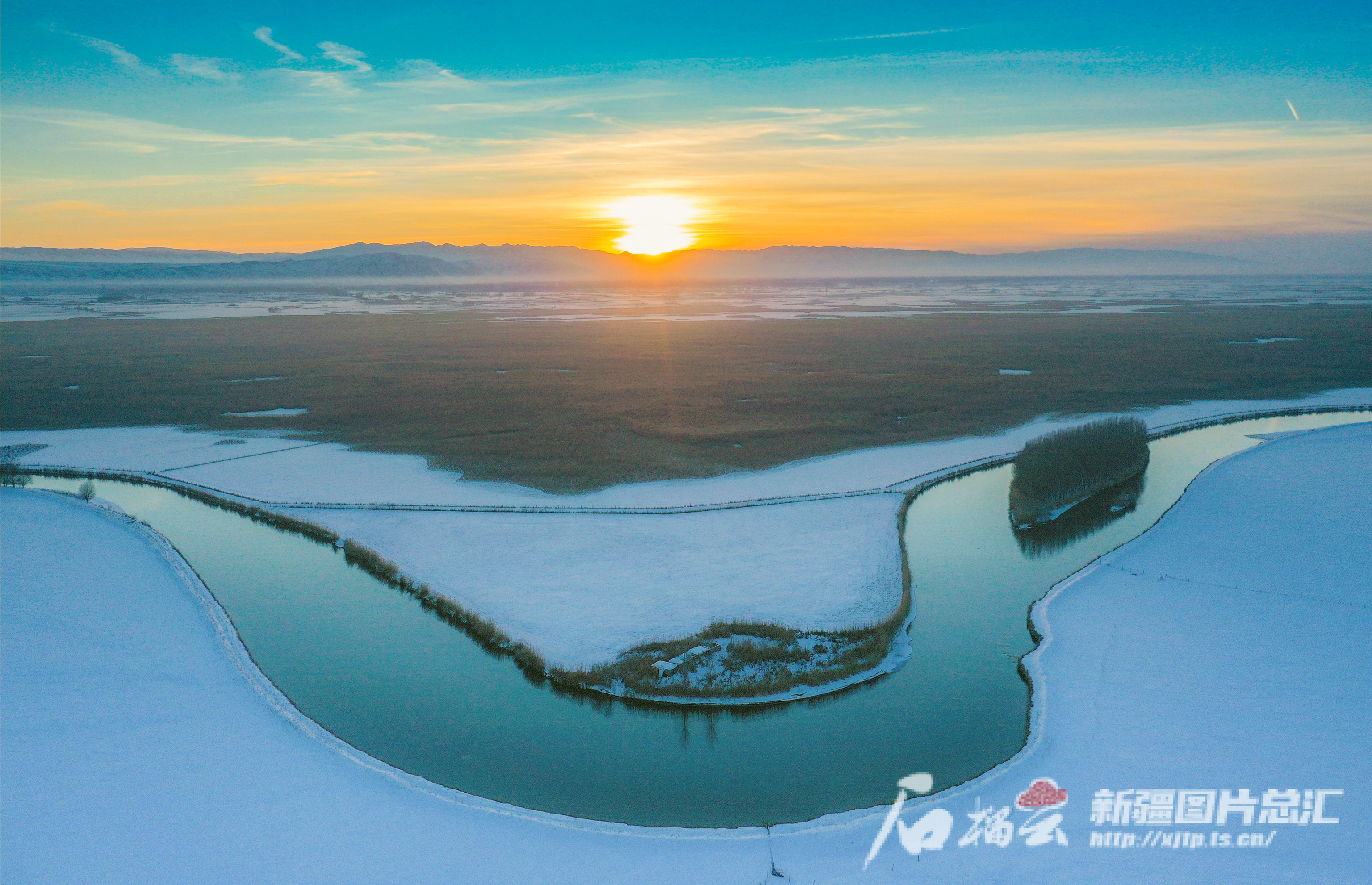 夕阳下的新源县那拉提湿地公园(1月21日摄)。张文庭摄