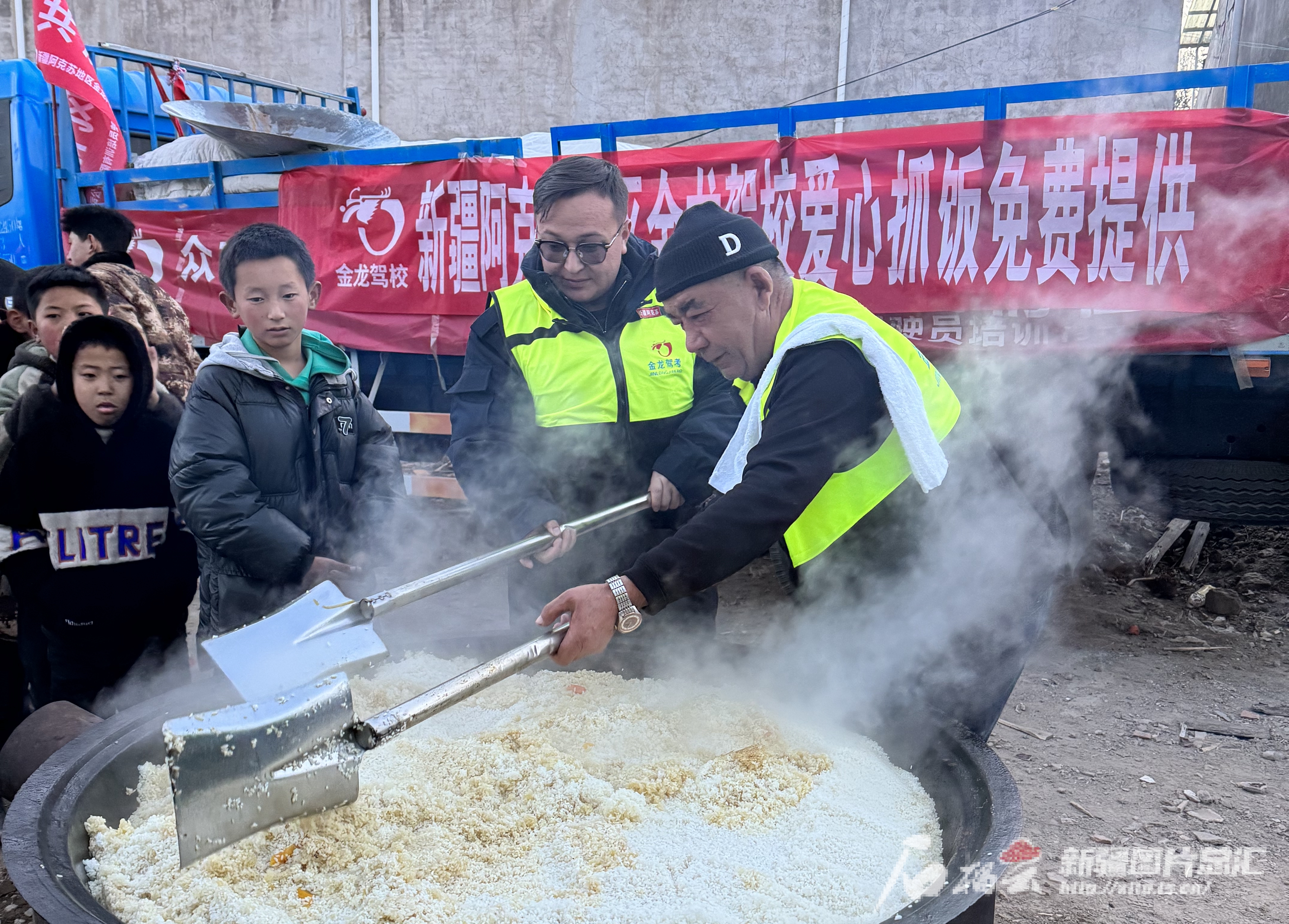 阿拉法特是阿克苏地区金龙汽车驾驶员培训有限责任公司总经理、阿克苏地区爱国拥军促进会副会长。前不久积石山6.2级地震发生后,他组织了一支27人的志愿者团队,带着8卡车物资行驶近3天,到达受灾较为严重的大河家镇及石塬镇。他们一边发放物资慰问受灾群众,一边支起大锅每天做五六锅抓饭。在灾区的7天里,他们结识了不少像马伟这样的当地朋友。