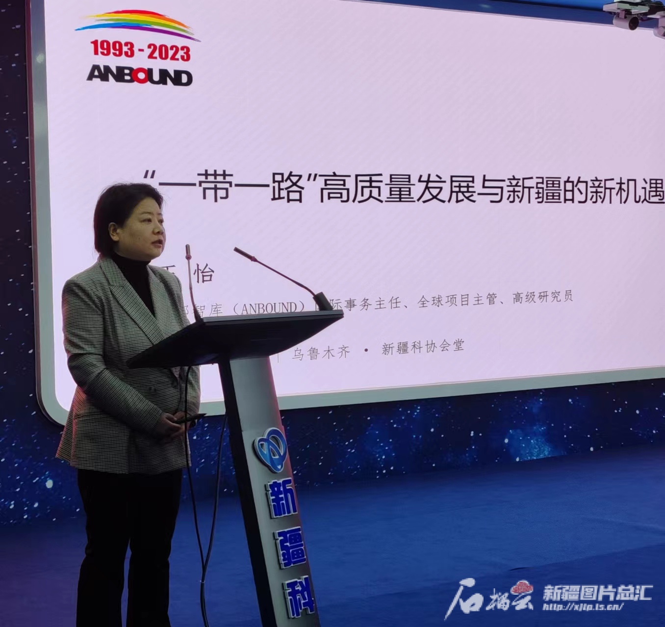 安邦智库全球事务中心主任、高级研究员王怡做了题为《“一带一路”高质量发展与新疆的新机遇》的主旨发言,围绕外部环境变化呈现新的特征、“一带一路”推进高水平对外开放、新疆未来发展的新机遇及政策抓手,多角度多层次进行了阐述。