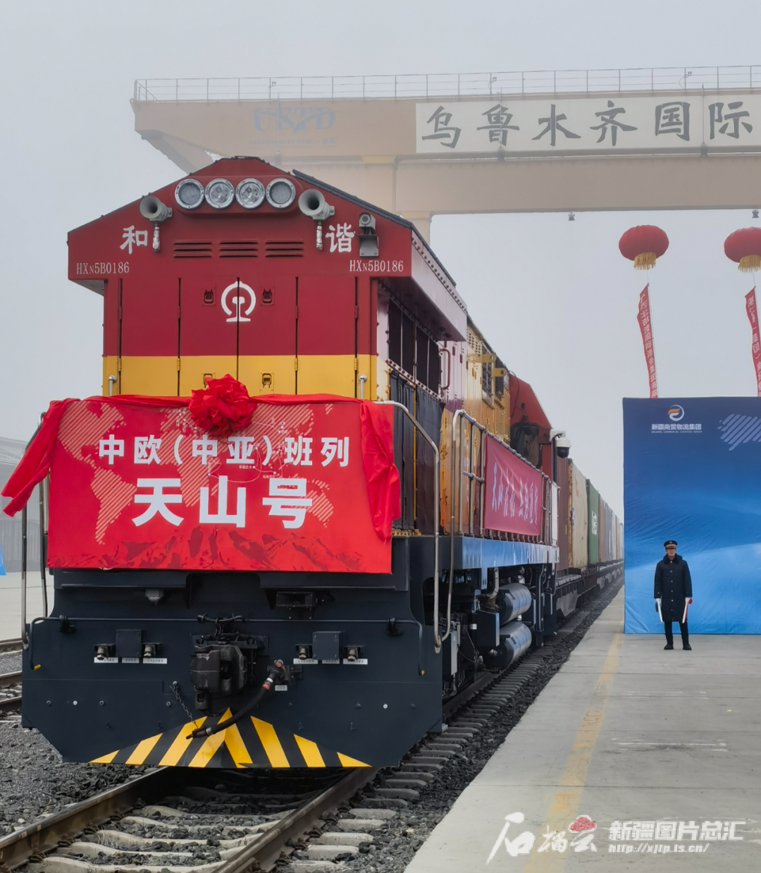 1月1日,2024年首列中欧(中亚)“天山号”班列从位于乌鲁木齐经济技术开发区(头屯河区)的乌鲁木齐国际陆港区驶出,发往哈萨克斯坦。 郭昌龙 摄