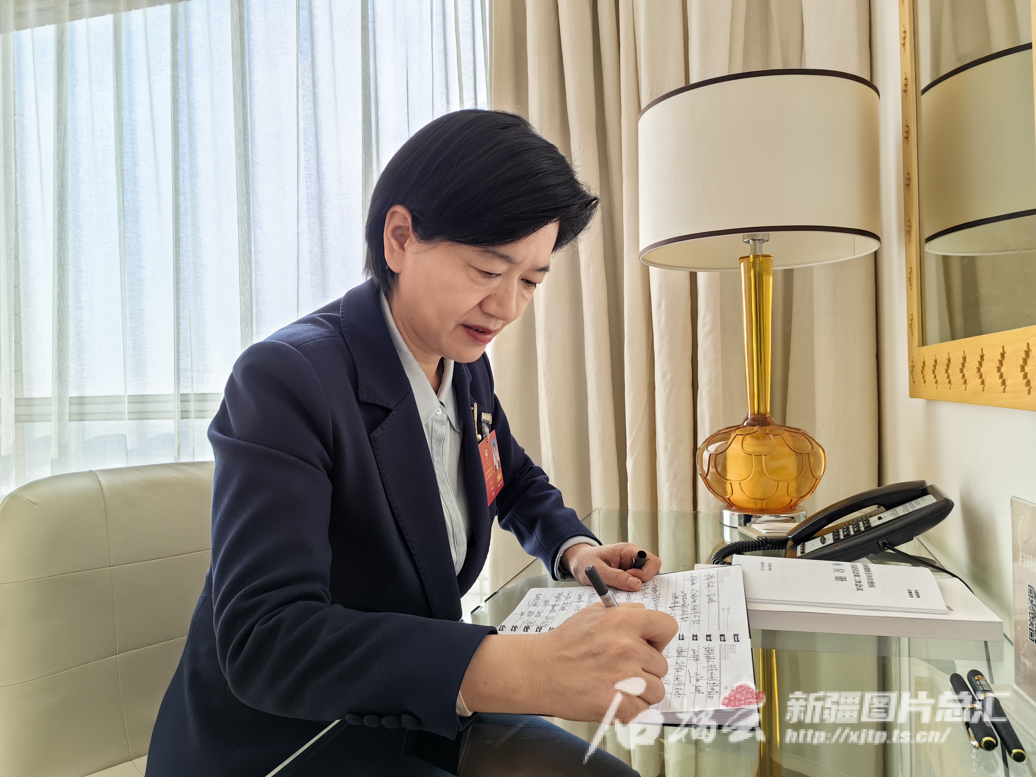 1月29日,自治区政协委员李灵慧在驻地写参会心得。石榴云/新疆日报记者 管梦颖摄