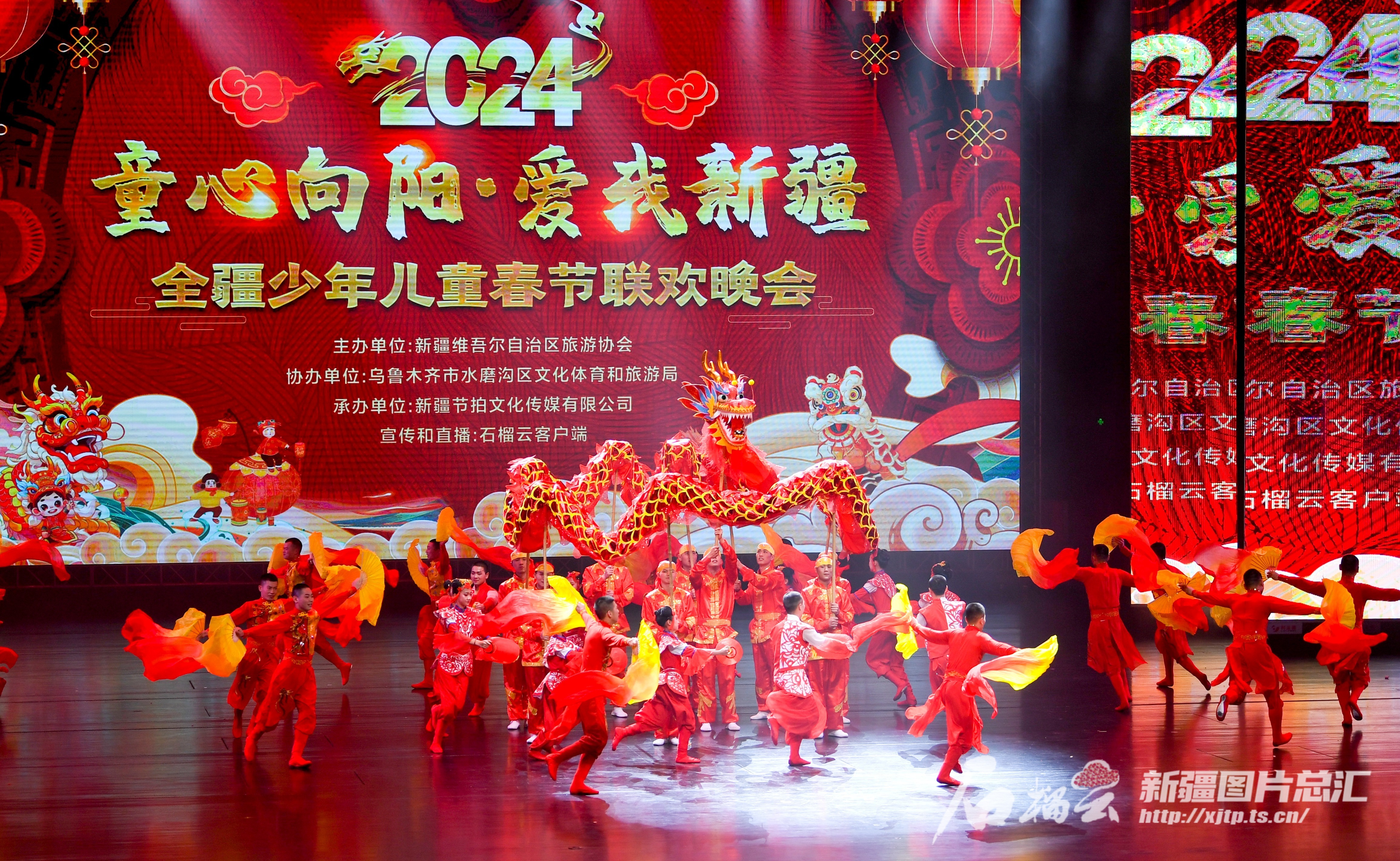 此次少儿春晚由自治区旅游协会主办,乌鲁木齐市水磨沟区文化体育和旅游局、新疆日报社(新疆报业传媒<集团>有限公司)石榴云艺术团协办。当晚,石榴云/新疆日报对晚会现场进行直播,吸引近15万人次观看。