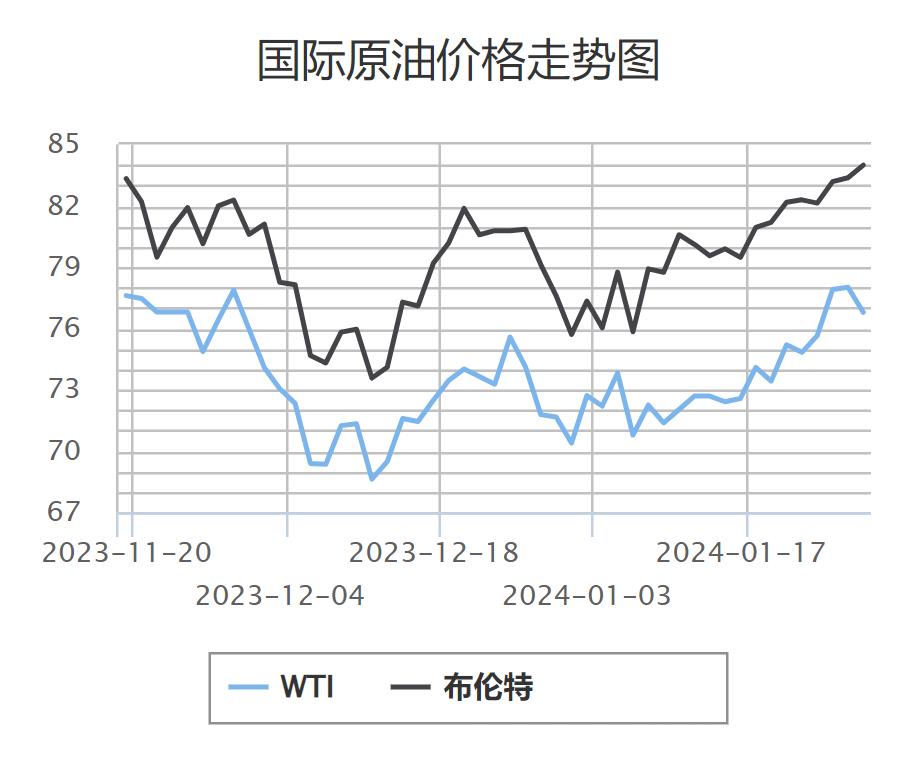 卓创资讯分析师王芦青分析,近期国际原油维持震荡偏强行情,驱动因素有两个:一是美国极寒天气,导致原油产量出现下降,且原油库存也持续去库,给予油价上涨驱动;二是中国持续释放利好政策,石油需求增加预期进一步增强。此外,市场对中东局势扰动依然保持谨慎,红海扰动带来的地缘溢价持续存在,这也支撑原油价格震荡偏强运行。