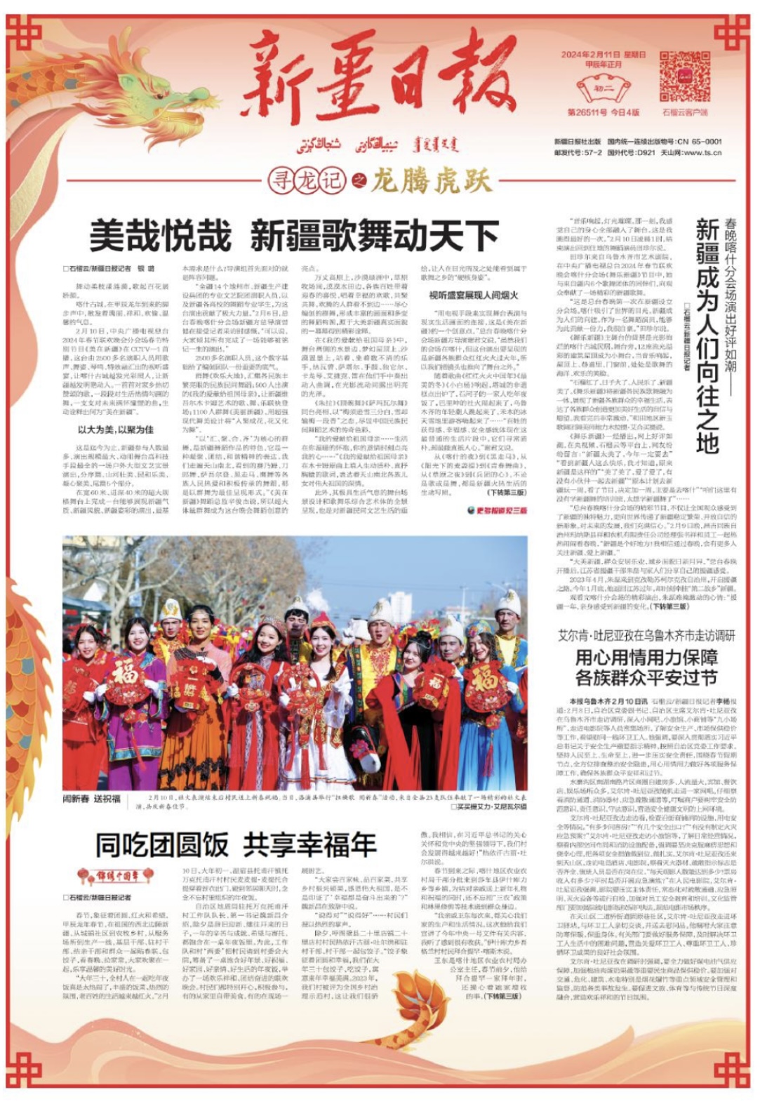 春节,象征着团圆、红火和希望。甲辰龙年春节,在祖国的西北边陲新疆,从城镇社区到农牧乡村,从服务场所到生产一线,基层干部、驻村干部、结亲干部和群众一起贴春联、包饺子、看春晚、拉家常,大家欢聚在一起,乐享温馨的美好时光。