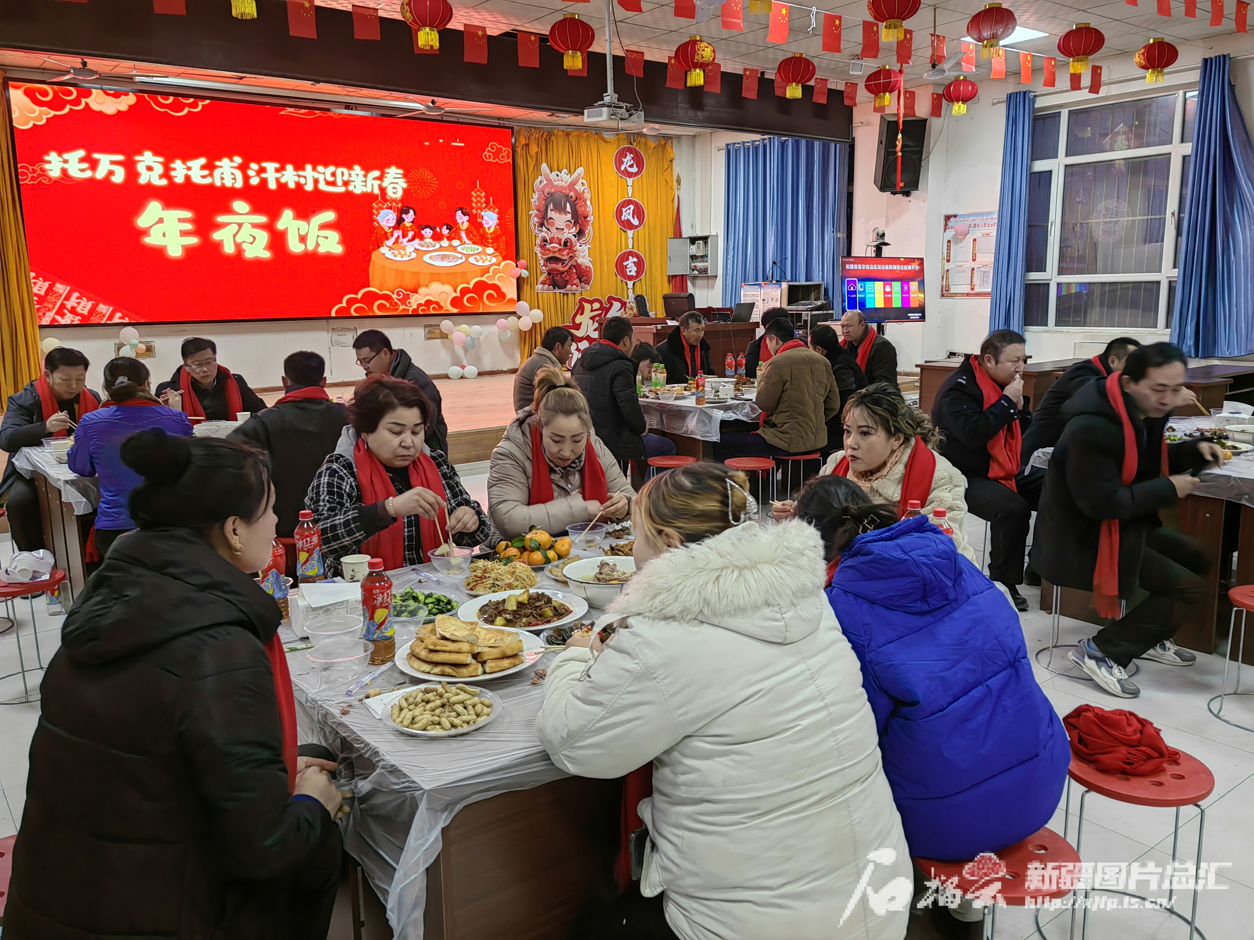自治区地质局驻托万克托甫汗村工作队队长、第一书记魏新昌介绍,除夕是辞旧迎新、继往开来的日子,一年的辛苦与成就、希望与寄托,都饱含在一桌年夜饭里。为此,工作队和村“两委”把村民请到村委会大院,筹备了一桌饱含好年景、好祝福、好家园、好亲情、好生活的年夜饭,举办了一场欢乐祥和、团结奋进的联欢晚会。村民们都特别开心,积极参与,有的从家里自带美食,有的在现场一展厨艺。