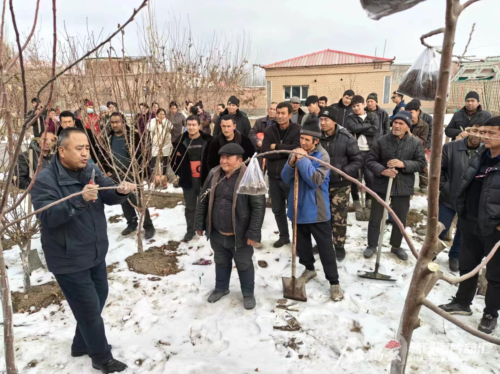 春节到来之际,喀什地区农业农村局干部分批来到莎车县乡村,向群众讲解林果修剪。喀什地区农业农村局 供图