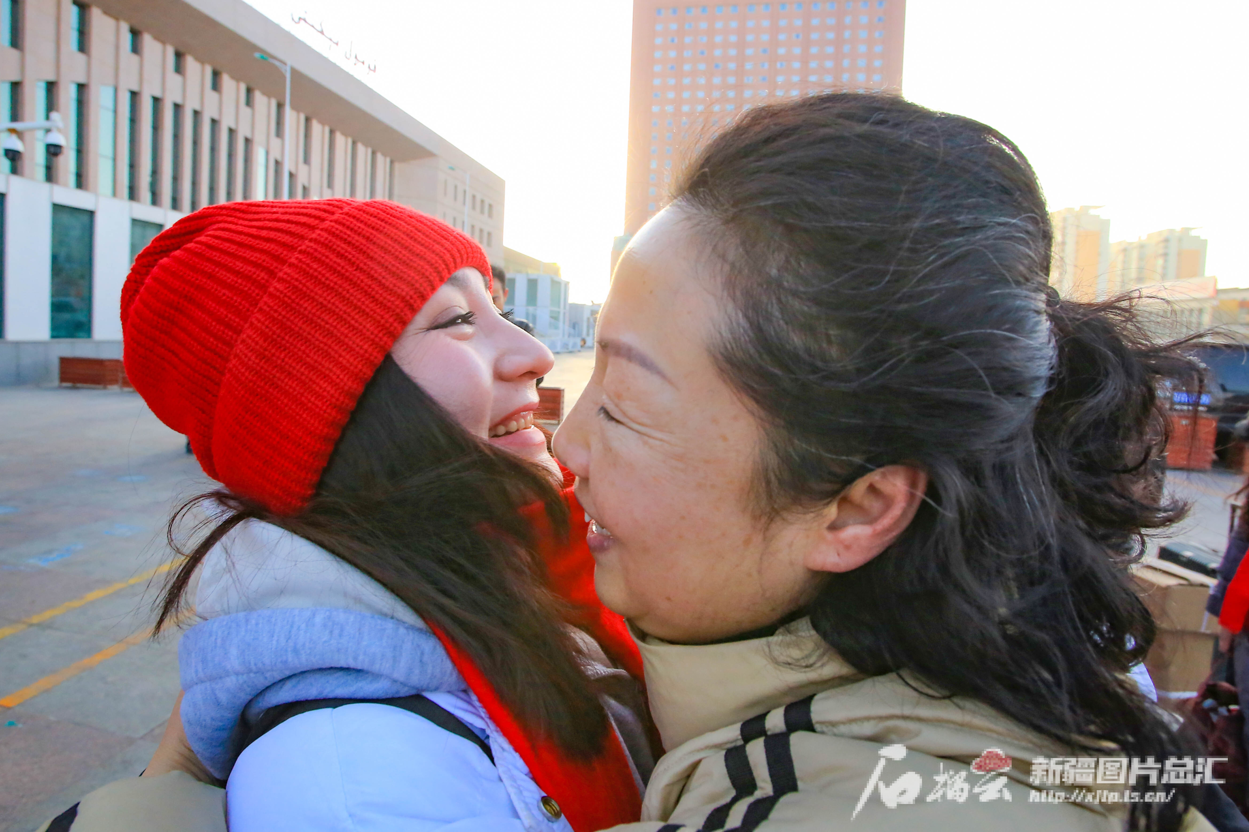 2月11日,参加中央广播电视总台《2024年春节联欢晚会》新疆喀什分会场演出的演员和亲人相拥庆祝。石榴云/新疆日报记者 蔡增乐 摄