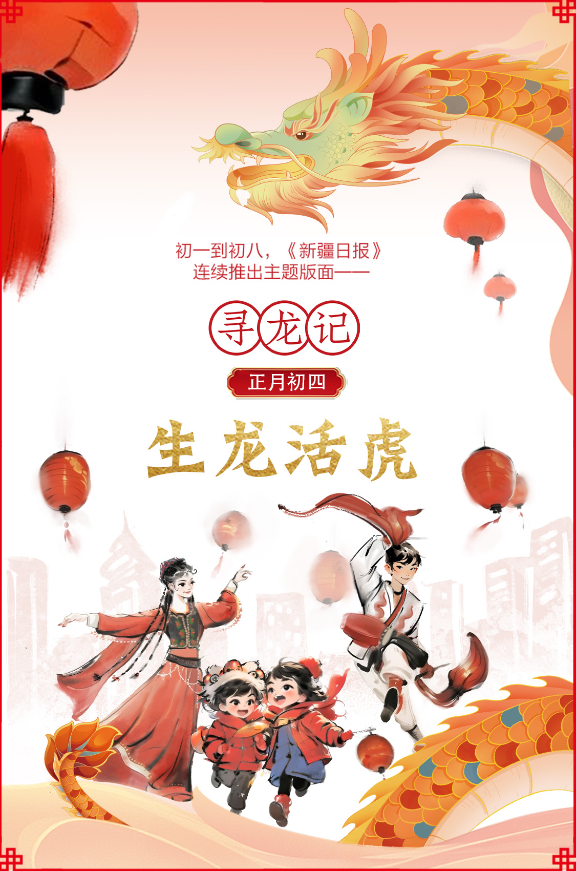 甲辰龙年到来之际,《新疆日报》这波操作出新了——初一到初八,连续推出 “寻龙记”主题版面,每天一个“龙”字成语,给各族群众送上满满的祝福。