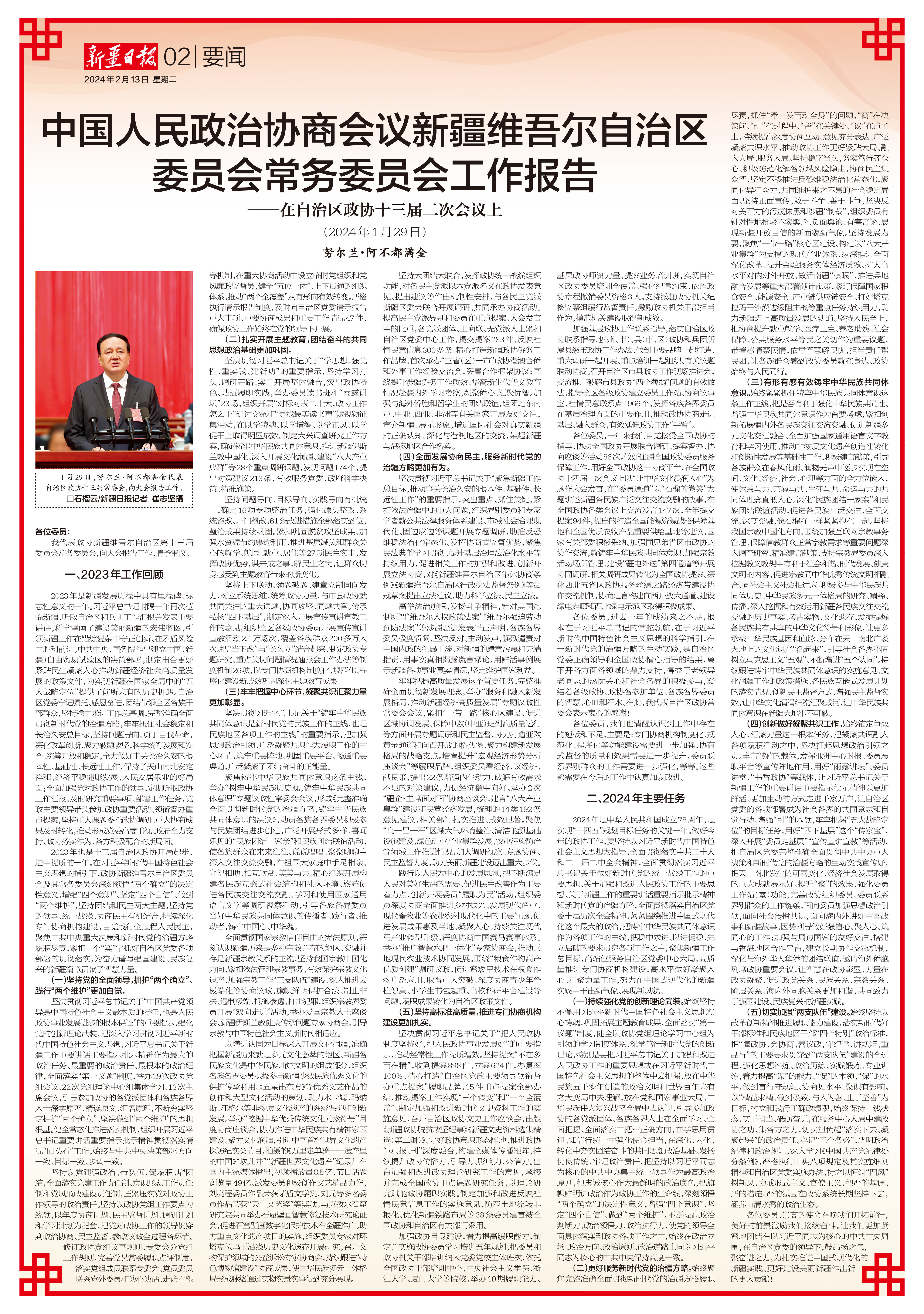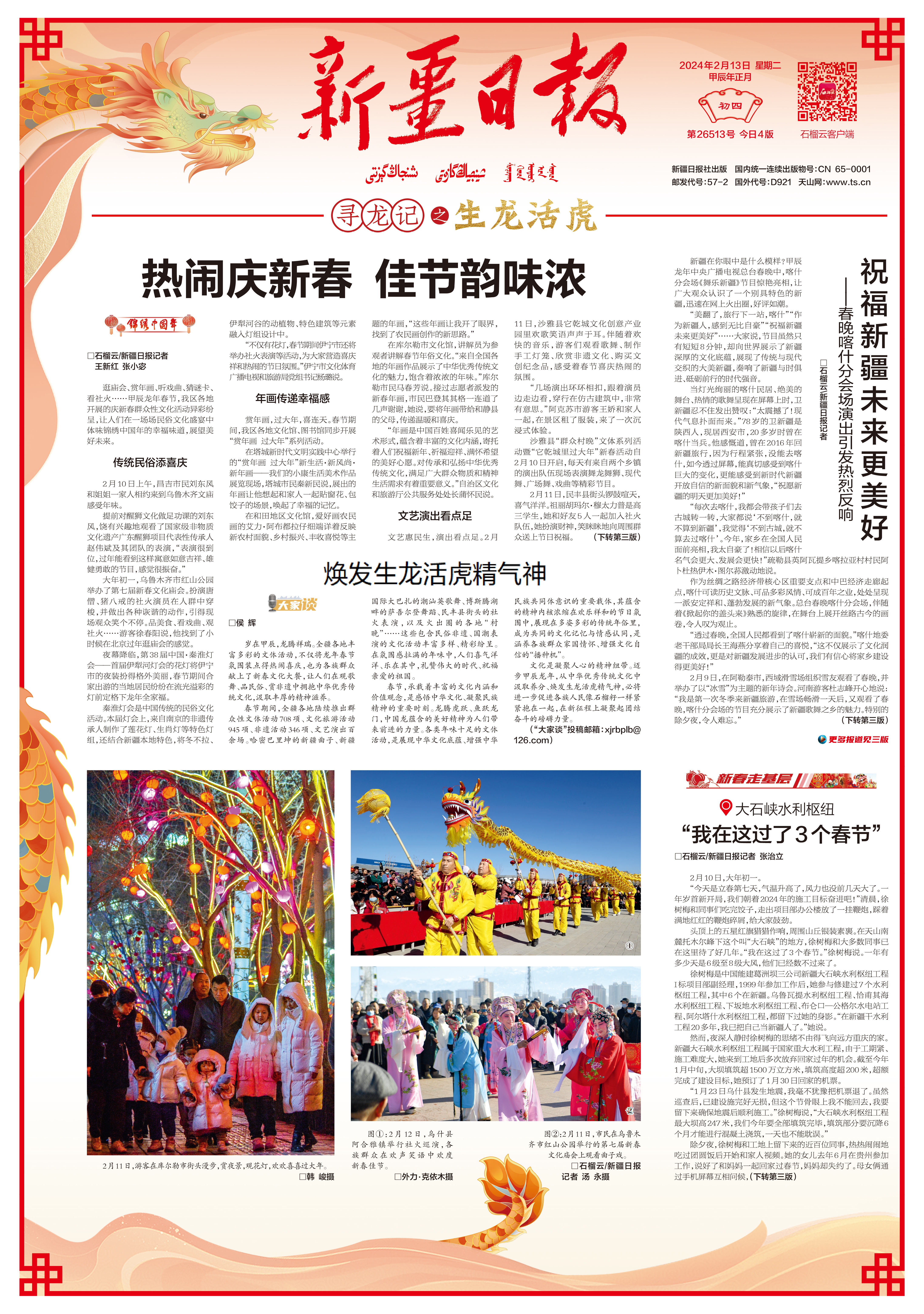 《新疆日报》2024年2月13日(正月初四)1版