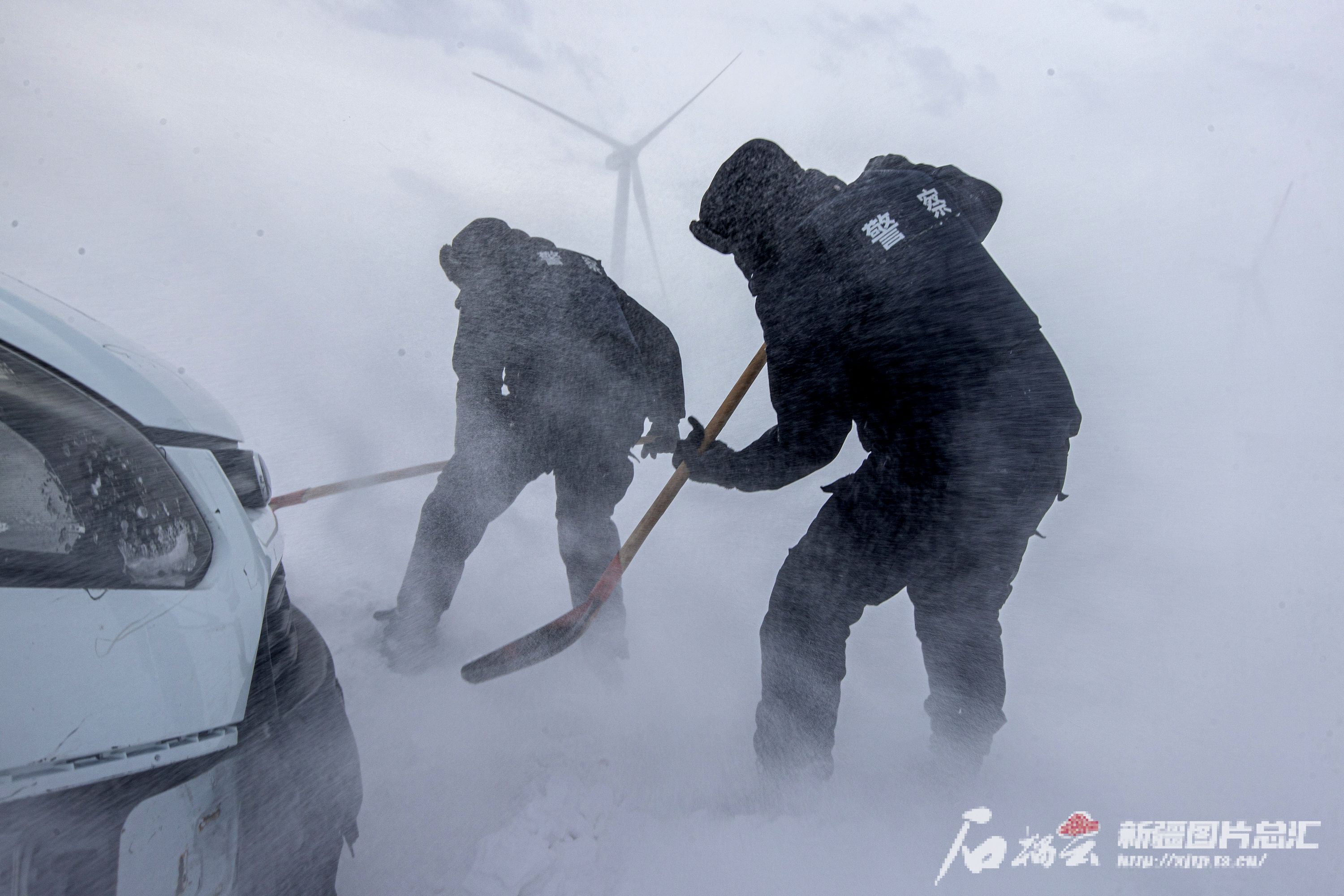 阿拉山口出现13级强风吹雪 民警全力救援被困车辆