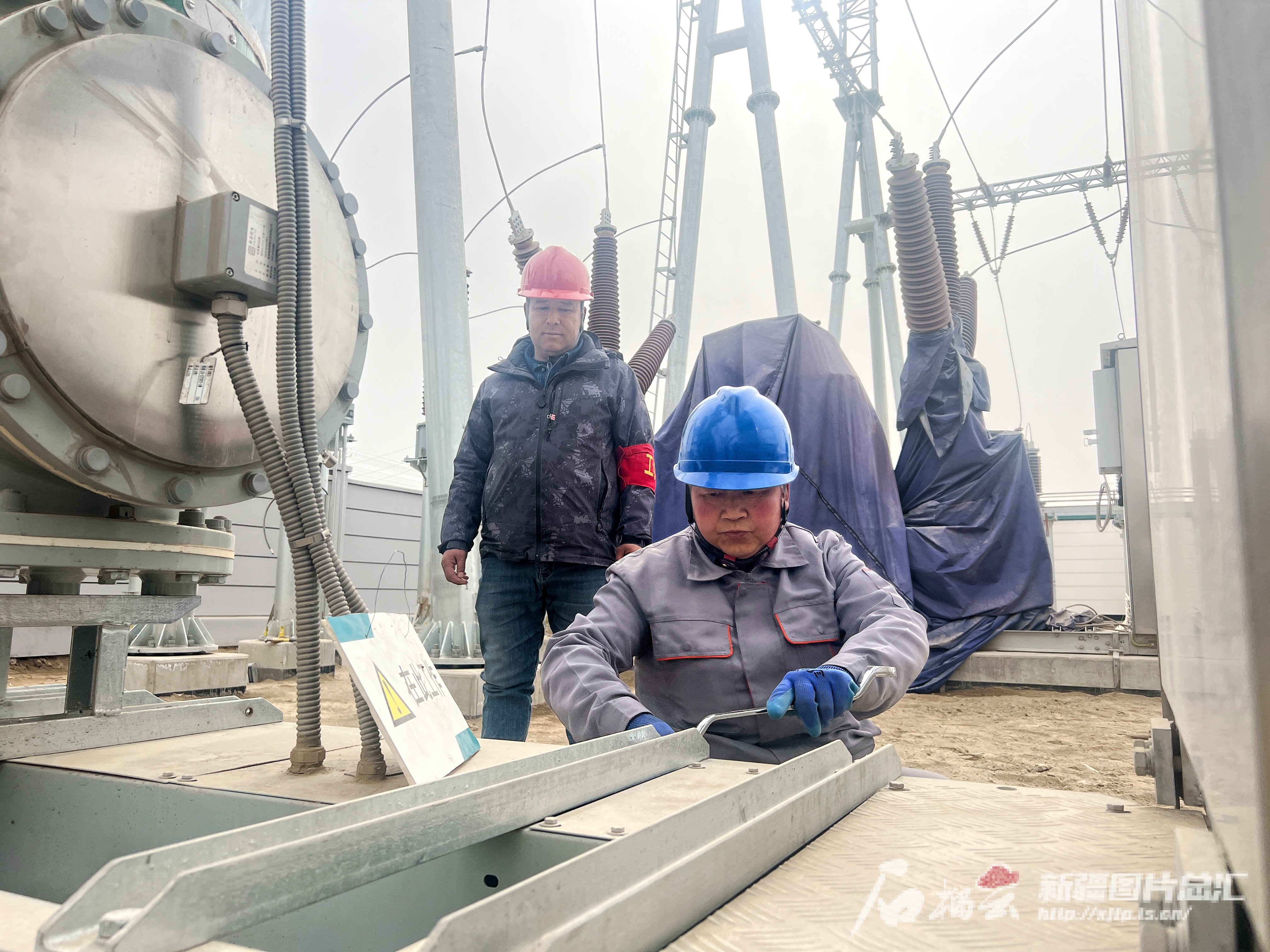 3月3日,位于墨玉县托胡拉乡的和田托胡拉110千伏输变电工程,现场施工人员正对设备进行消缺工作。石榴云/新疆日报记者 拍热扎提·阿不都 摄