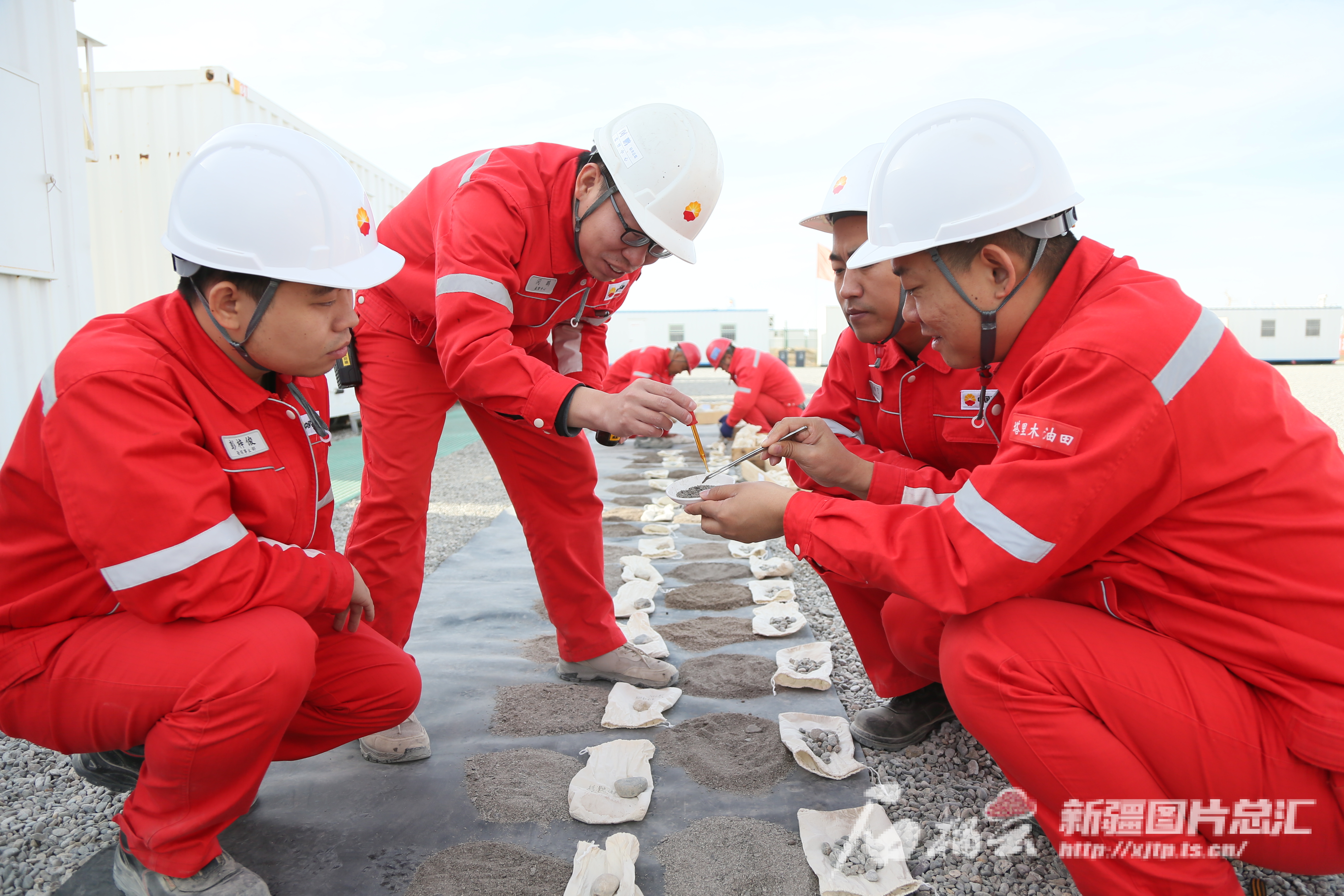 深地塔科1井井场,技术人员在观察岩屑。陈士兵 摄