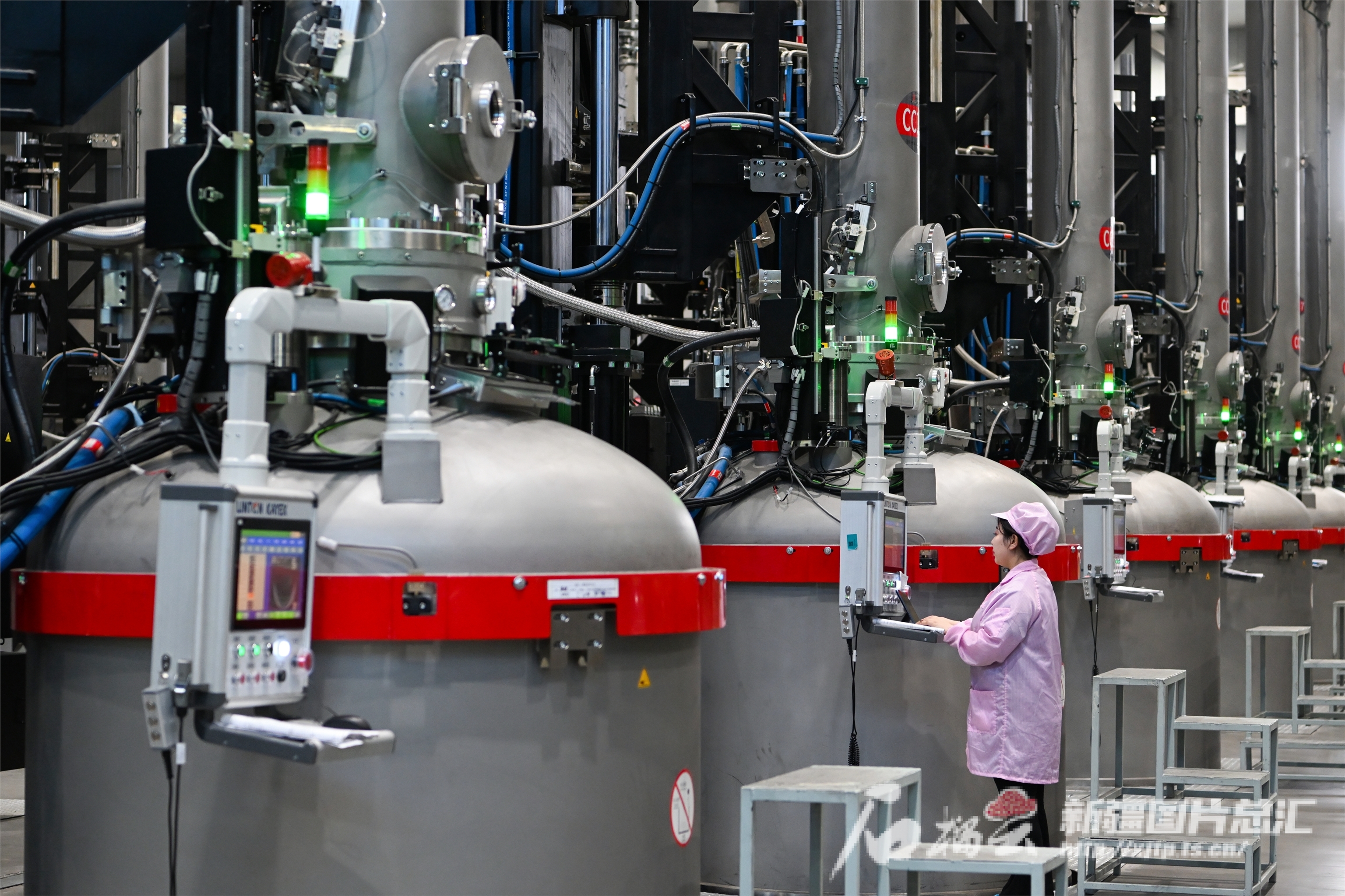 2月27日,位于克拉玛依市乌尔禾区硅基新材料产业园的新疆晶品新能源有限公司生产车间内,工人在查看设备运行情况。闵勇摄