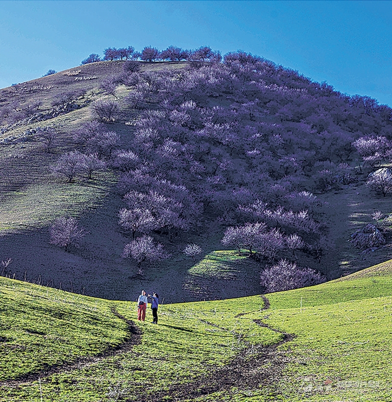 3月26日,游客在新源县那拉提杏花谷景区踏青。张文庭摄