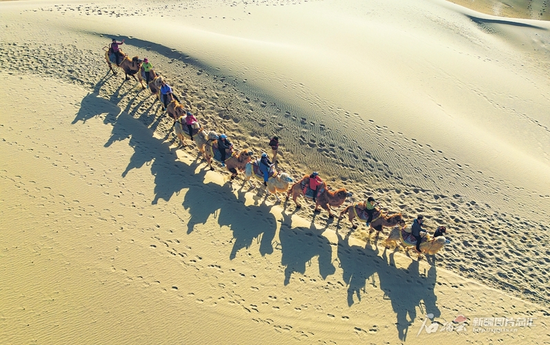 3月26日,游客在尉犁县罗布人村寨景区骑骆驼游玩。随着天气转暖,该景区游客逐渐增多。汪志鹏摄