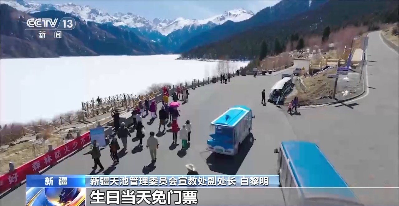 新疆天池管理委员会宣教处副处长 白黎明:推出了新增的九个优惠政策,包括了一票两日游、生日当天免门票和景企互动的一些优惠政策,同步推出了六条精品旅游线路,来不断吸引游客到天山天池。