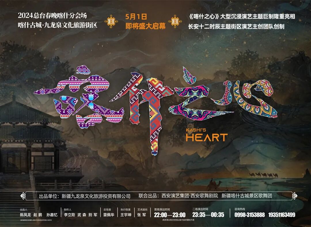 “长安十二时辰主题街区”演艺主创团队量身创编、因地制宜为“2024央视春晚喀什分会场”打造的大型沉浸演艺主题剧目《喀什之心》,象征着乐动、活力、关怀的心永远脉动,同时体现了“众生之心、勇者之心、不屈之心、希望之心、团结之心、无界之心”。