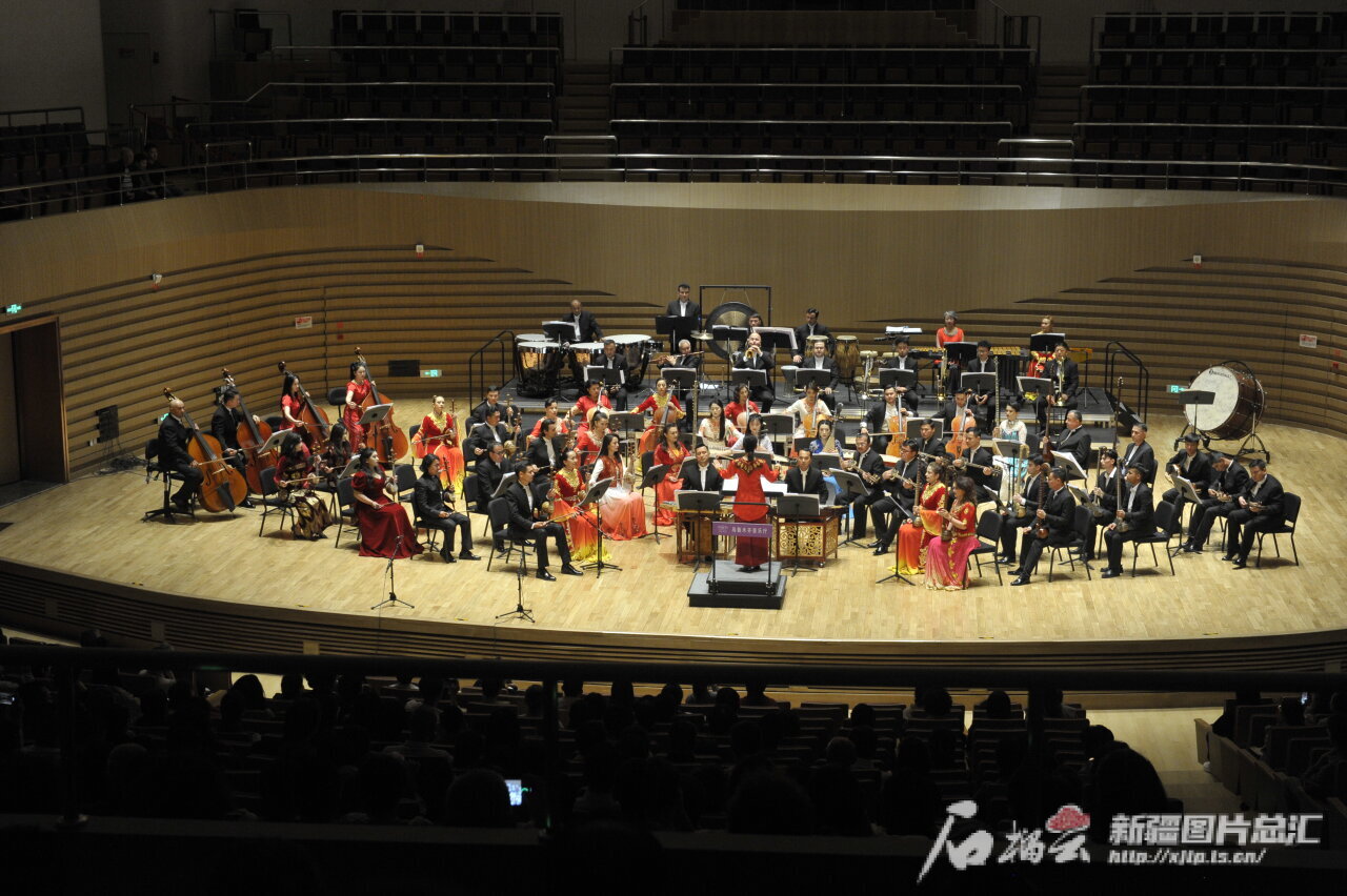 石榴云/新疆日报讯(记者 王禹摄影报道)5月5日,民族管弦乐《音乐铺就的丝绸之路》在乌鲁木齐文化中心上演。