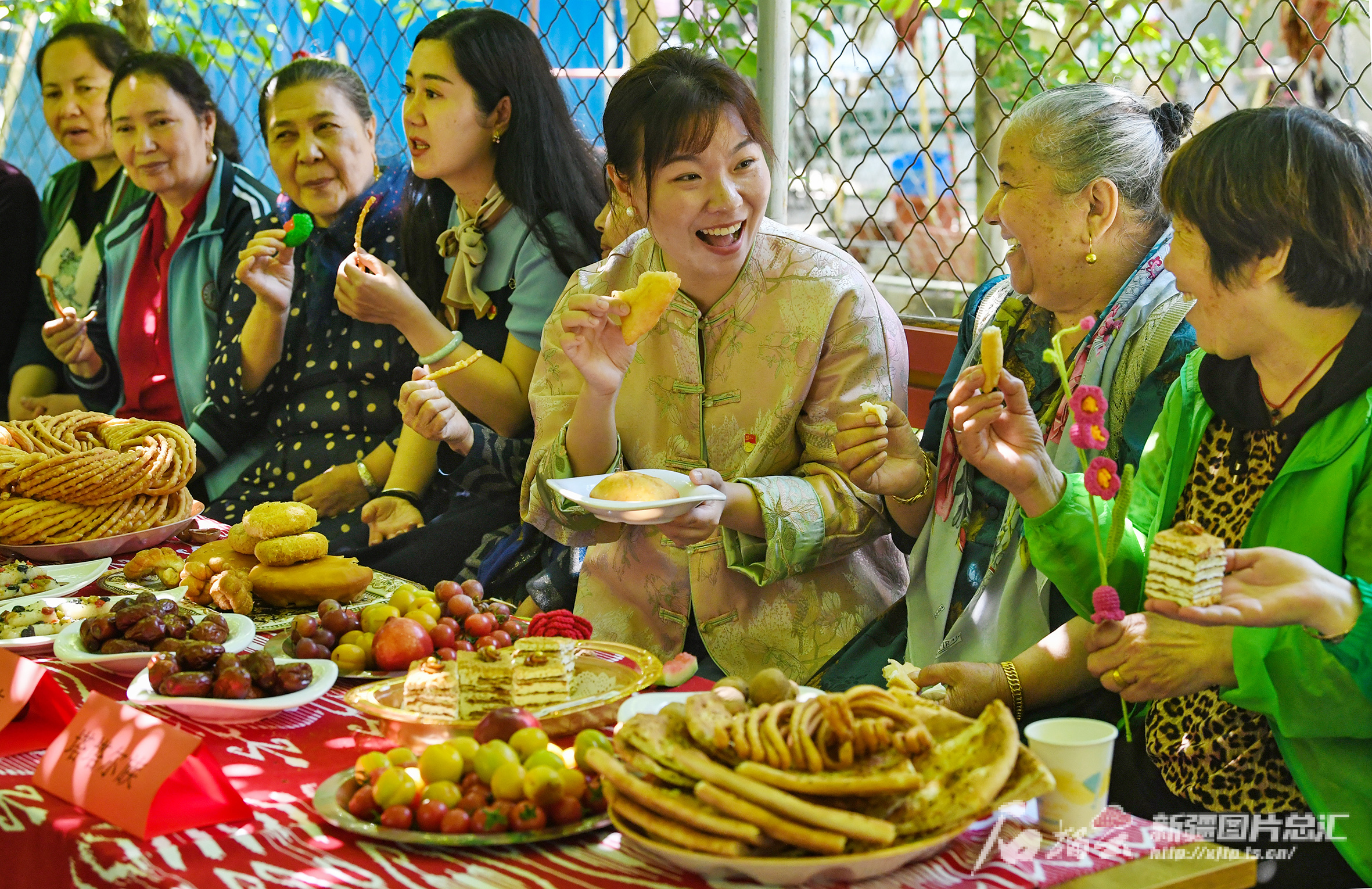 活动现场,居民自编自演的歌舞、小品、时装秀等精彩节目轮番上演,大家一边品尝饺子、粽子、馓子、包尔萨克等美食,一边欣赏表演,个个脸上都洋溢着灿烂的笑容。“邻居们聚在一起有说有笑,就像一家人,我特别享受这样的时光。”居民阿米尼木·苏里旦说。