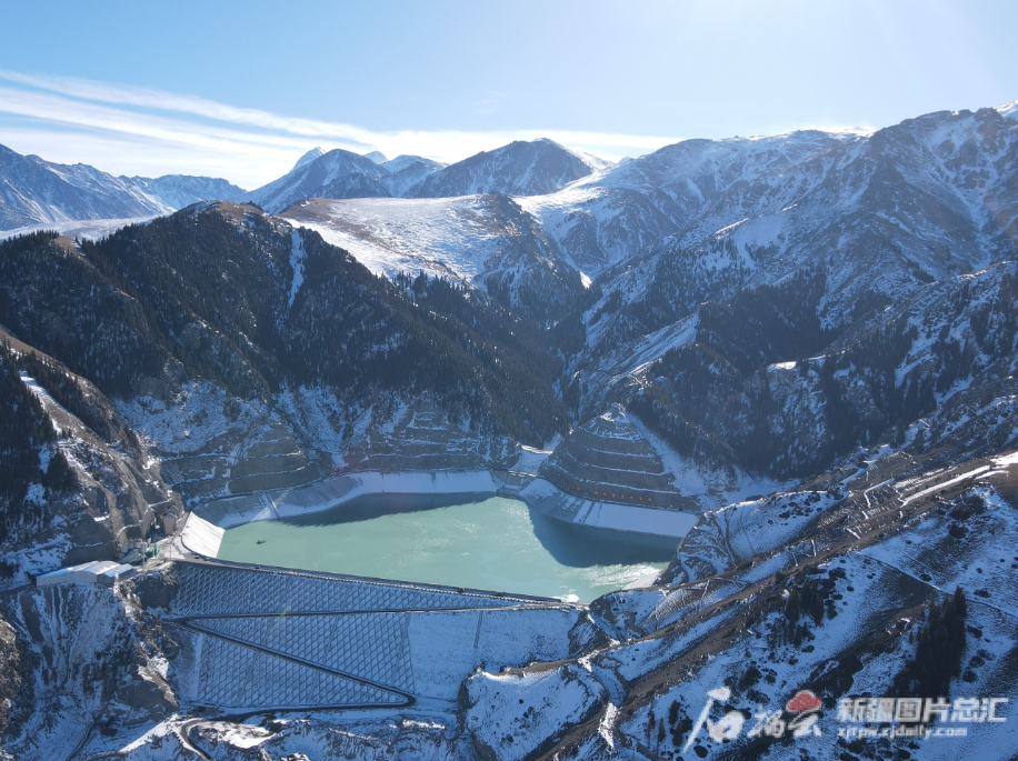 鸟瞰冬日阜康抽水蓄能电站。图片由阜康抽水蓄能电站提供
