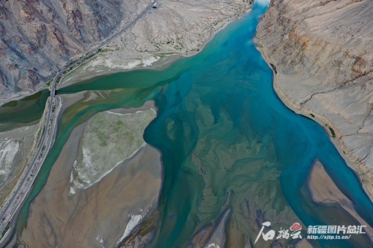 6月4日拍摄的塔什库尔干河景色(无人机摄)。天山网-新疆日报记者 蔡增乐摄