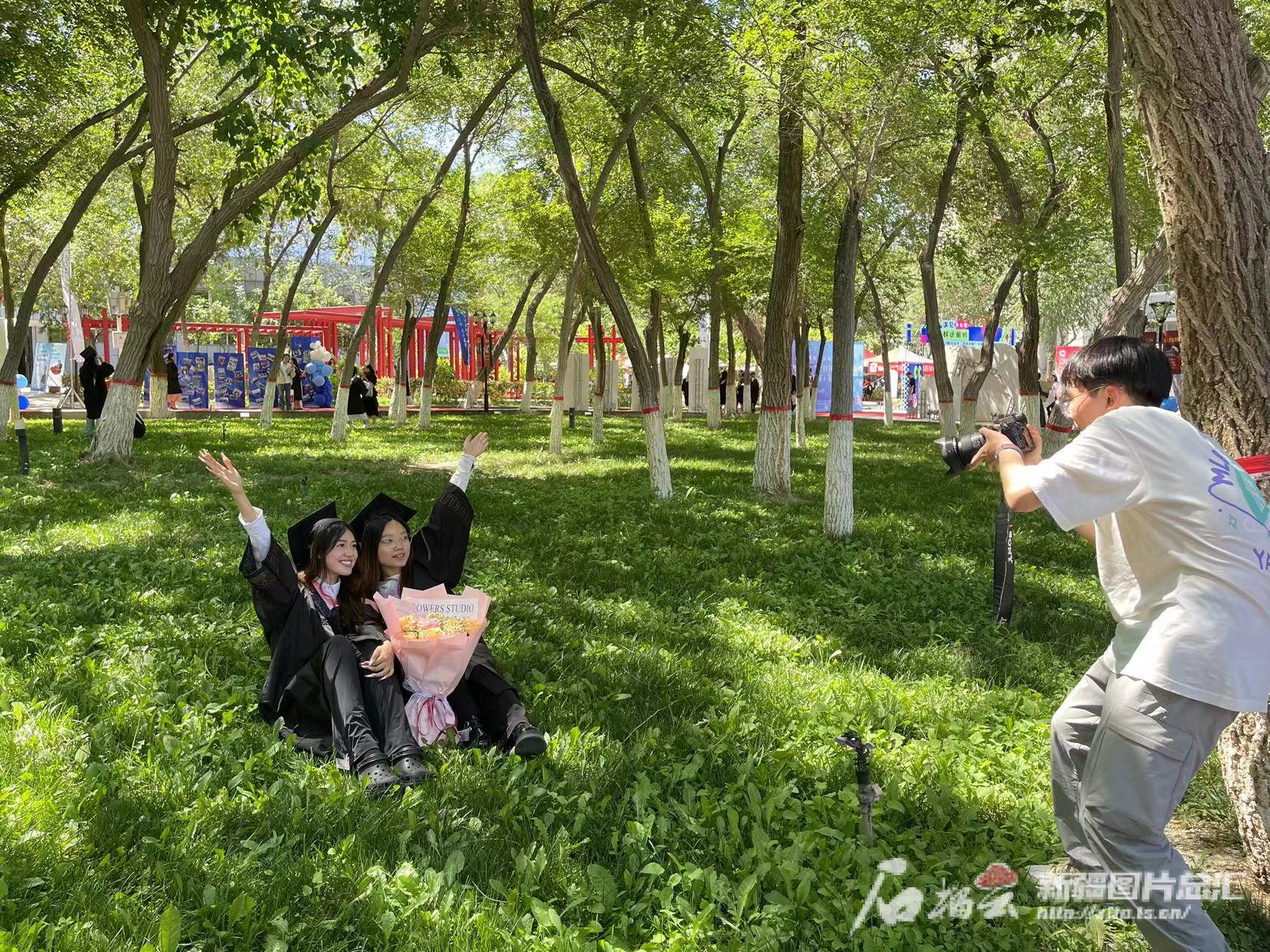 6月12日,新疆财经大学2024届毕业生在校园打卡留念。赵西娅摄
