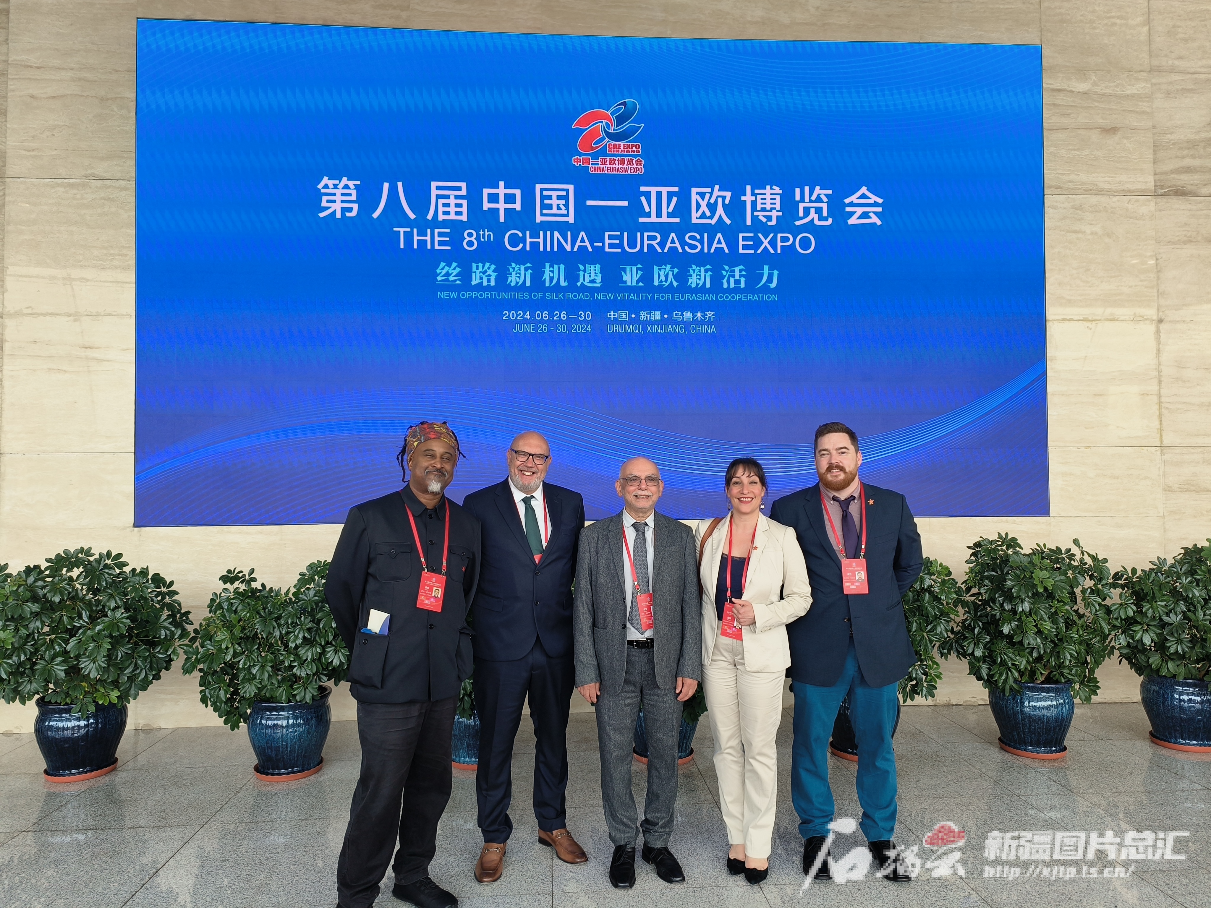 英国友好人士代表团在第八届中国—亚欧博览会上合影留念。石榴云/新疆日报记者 范琼燕摄